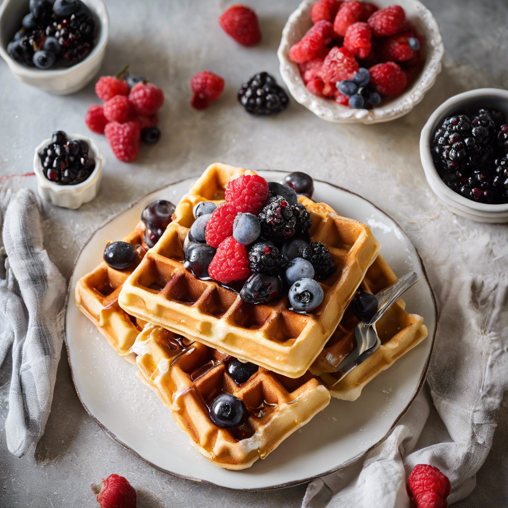 Belgian waffles with mixed berries are a delightful combination of crispy, fluffy waffles topped with a medley of fresh, juicy berries. Originating in Belgium, these waffles have become a beloved breakfast and brunch dish worldwide. The light, airy texture of the waffles pairs perfectly with the sweet and tart flavors of the mixed berries, creating a harmonious blend of taste and texture. In Belg...