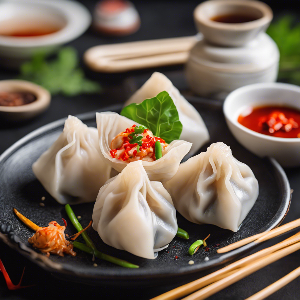 Delicious and flavorful steamed shrimp dumplings served with a spicy dipping sauce.