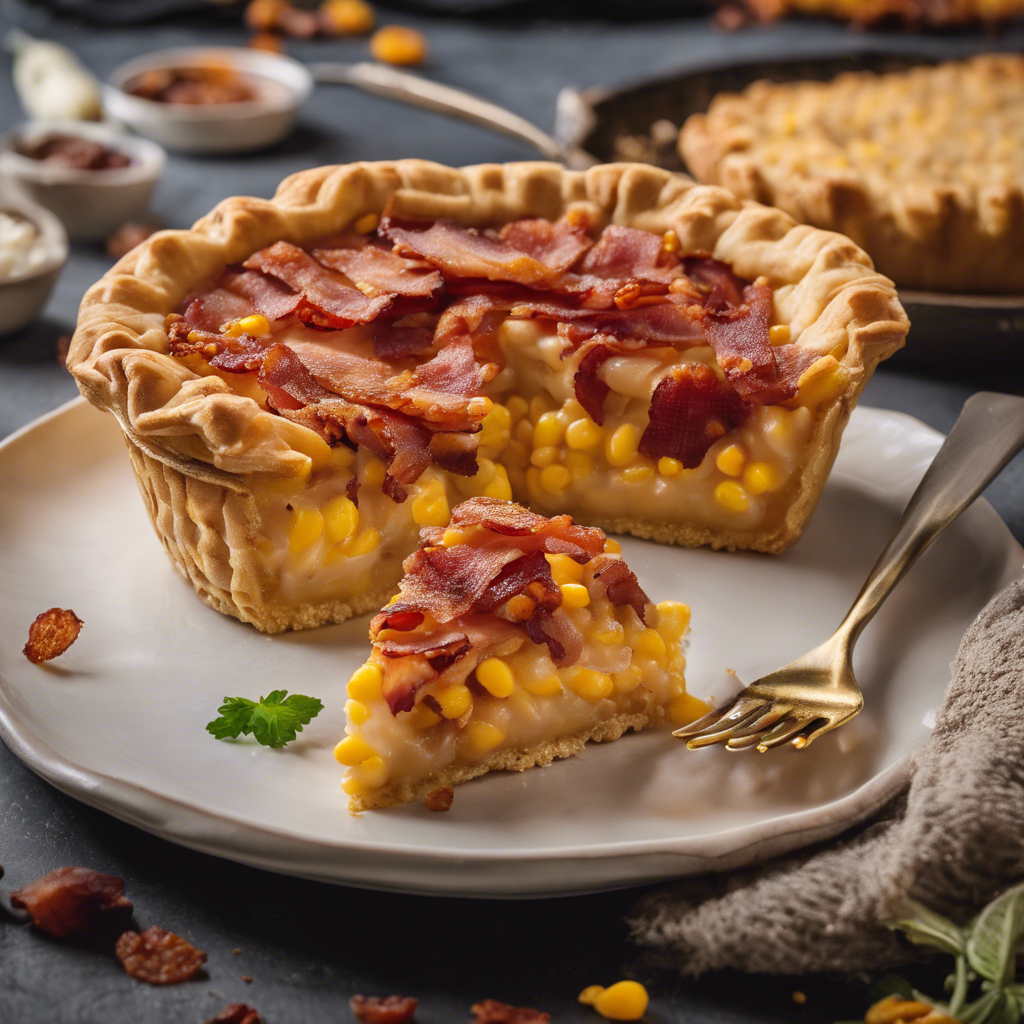 A delicious corn pie with a crispy bacon crust that will leave you wanting more.