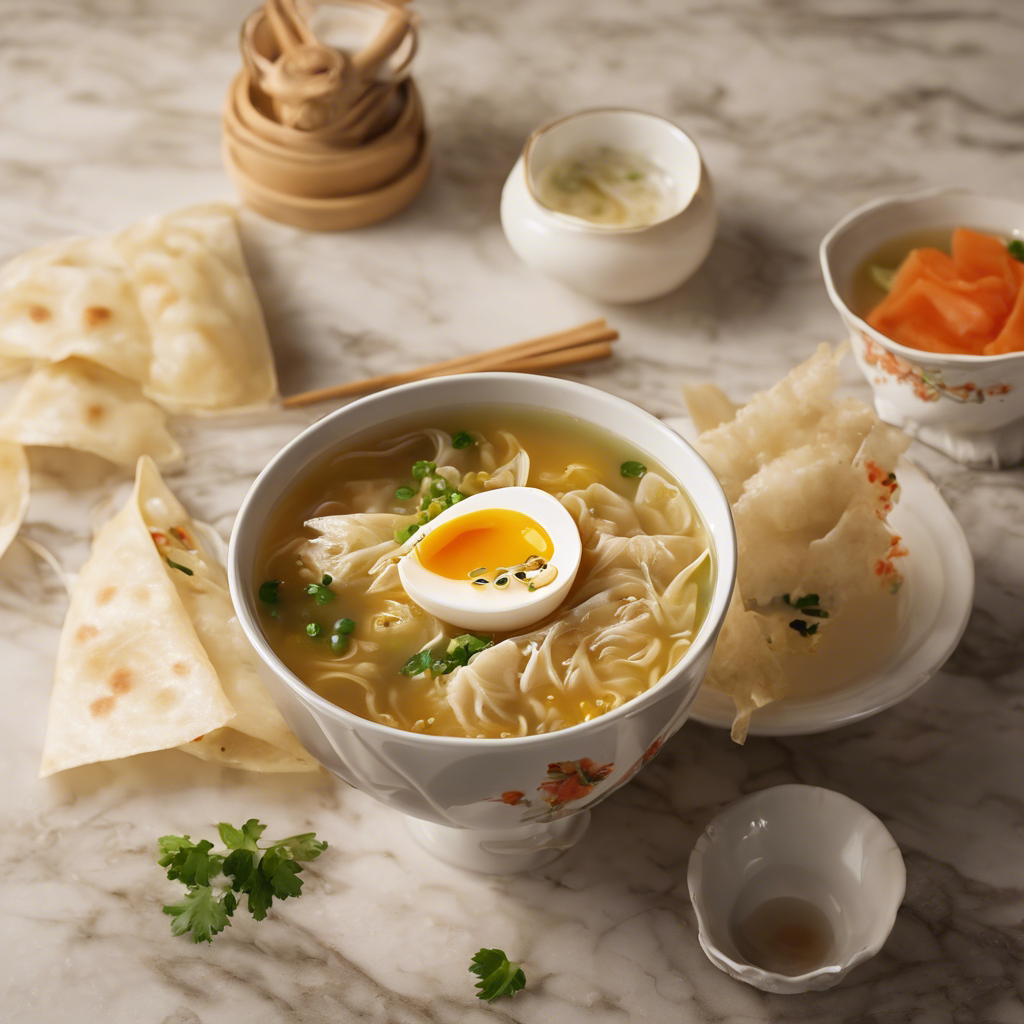 A comforting and flavorful soup with wontons and egg drop for a satisfying meal.
