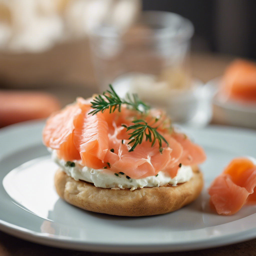 A delicious and easy-to-make breakfast or brunch option featuring smoked salmon and cream cheese on an English muffin.