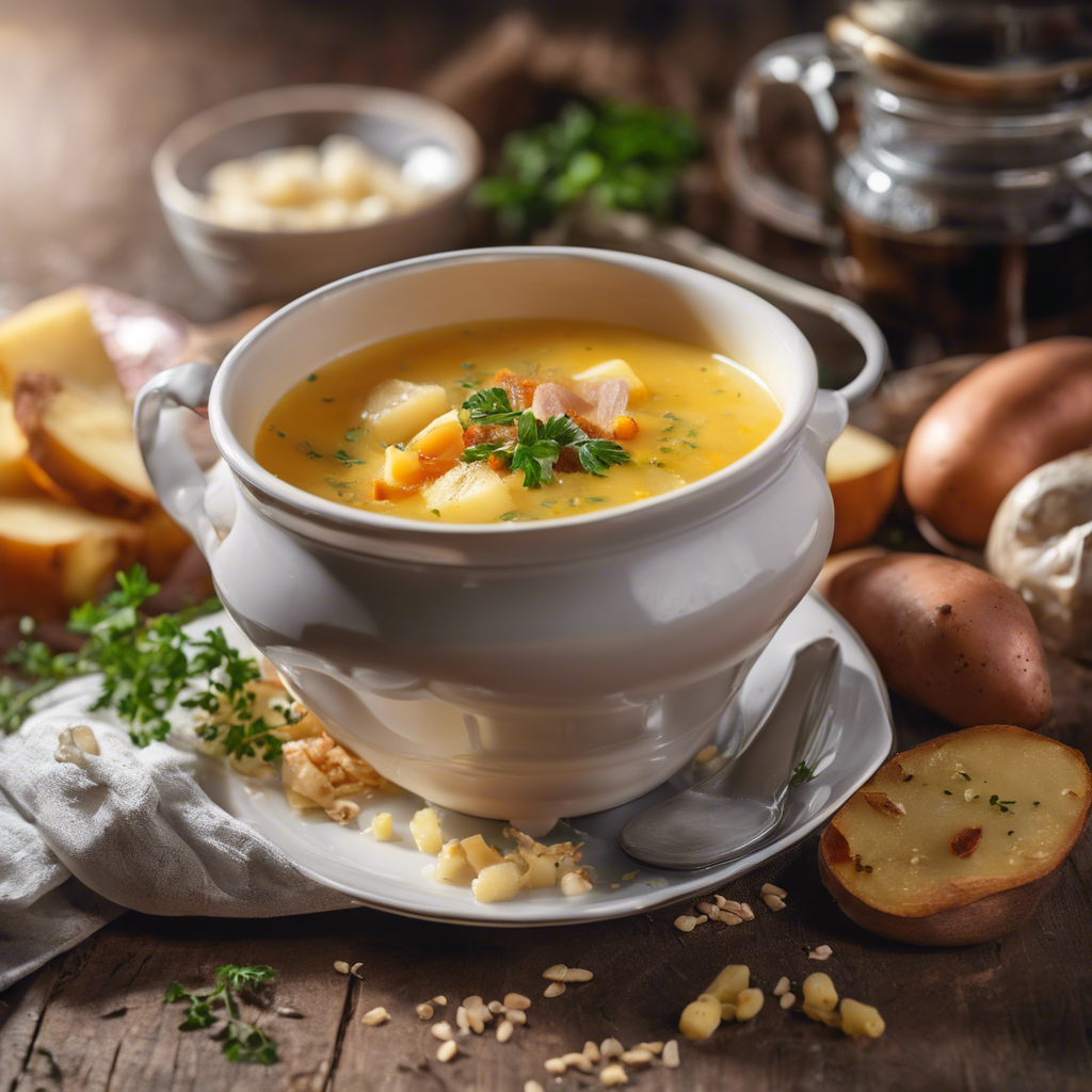 A hearty and comforting soup made with potatoes, bacon, and vegetables, perfect for a cozy meal.