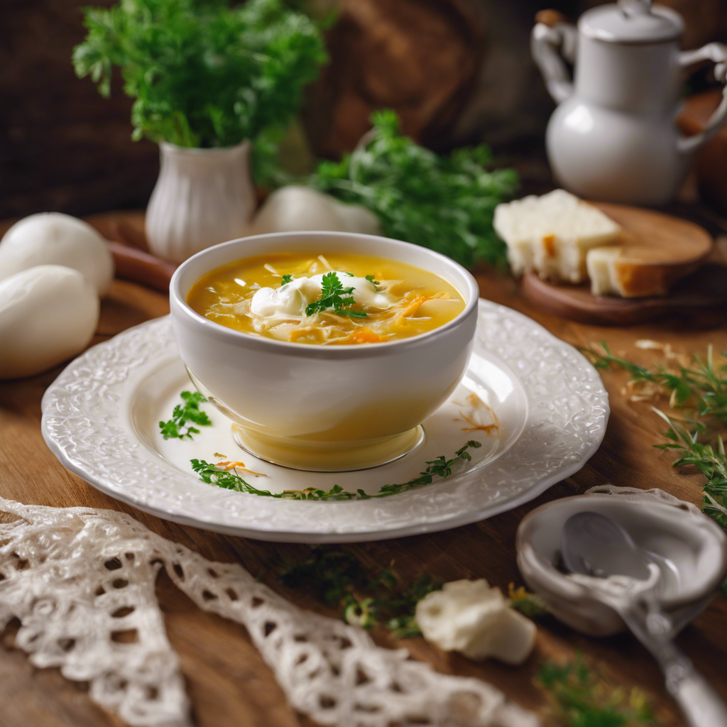 A hearty and tangy soup with sauerkraut and a creamy dollop of sour cream.