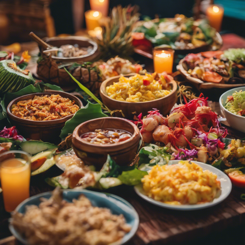 A traditional Hawaiian feast featuring a variety of delicious dishes.
