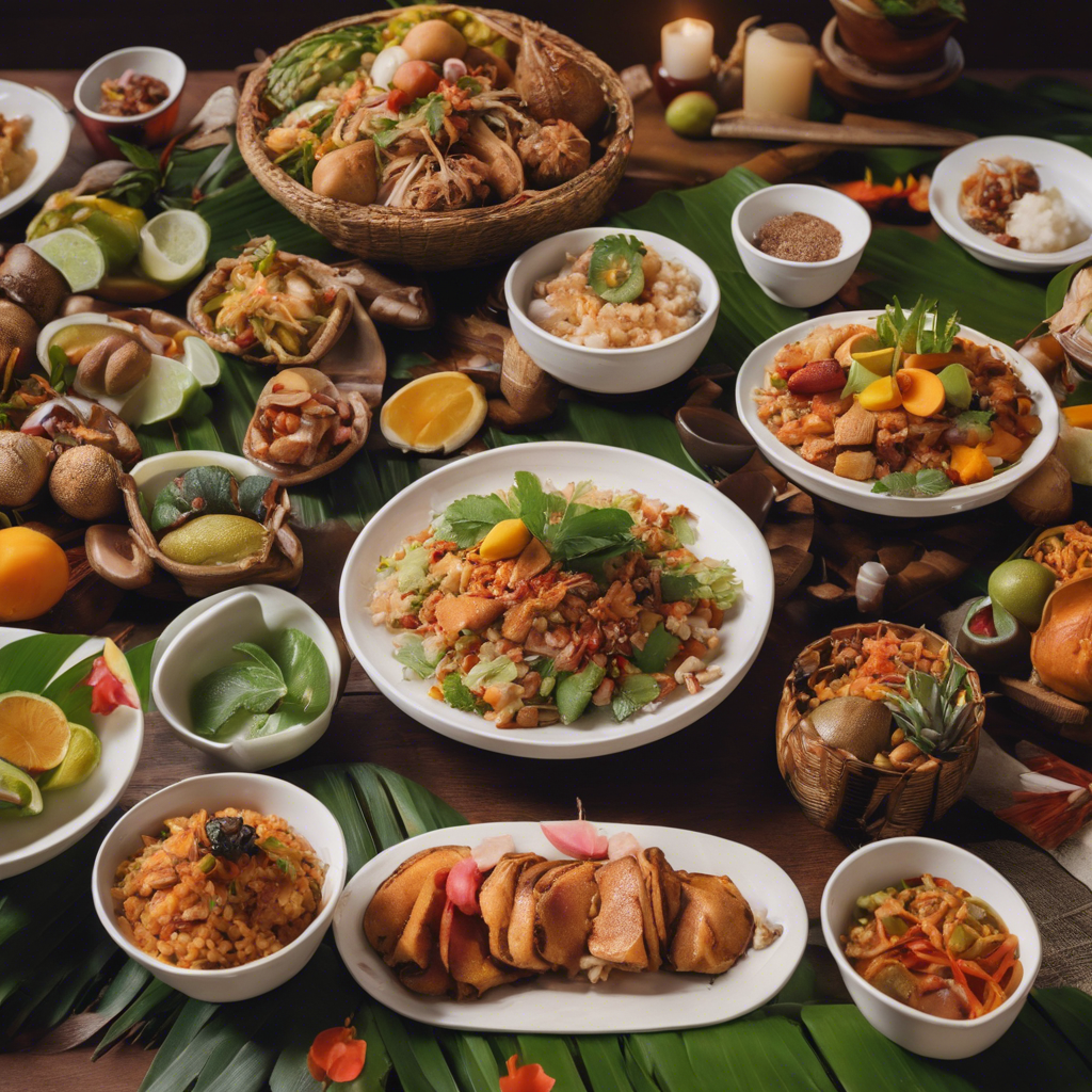 A delicious and flavorful Polynesian feast featuring a variety of traditional dishes.