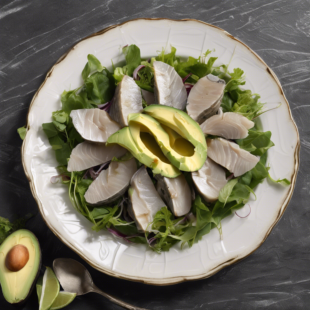 A refreshing and flavorful salad featuring pickled herring, mixed greens, and creamy avocado.