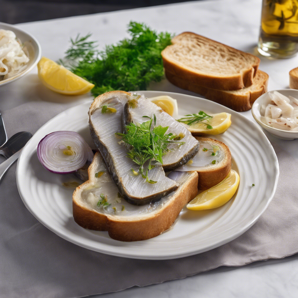 A classic Scandinavian dish of pickled herring, perfect for appetizers or as a side dish.