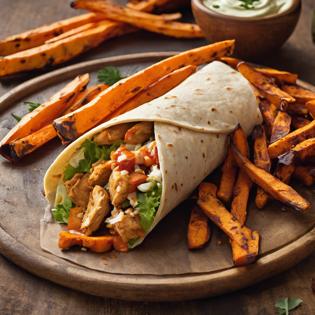 The Spicy Chipotle Southwest Chicken Wrap has a rich history rooted in the flavors of the American Southwest. This dish is a fusion of bold and zesty ingredients, featuring tender grilled chicken, crisp lettuce, juicy tomatoes, and a creamy chipotle sauce, all wrapped in a warm tortilla. The addition of sweet potato fries on the side adds a delightful sweetness and crunch to the meal. This delecta...