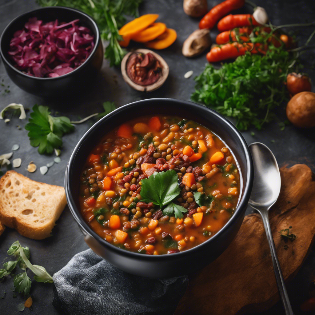 A hearty and flavorful soup with smoky chorizo, lentils, and a variety of vegetables.