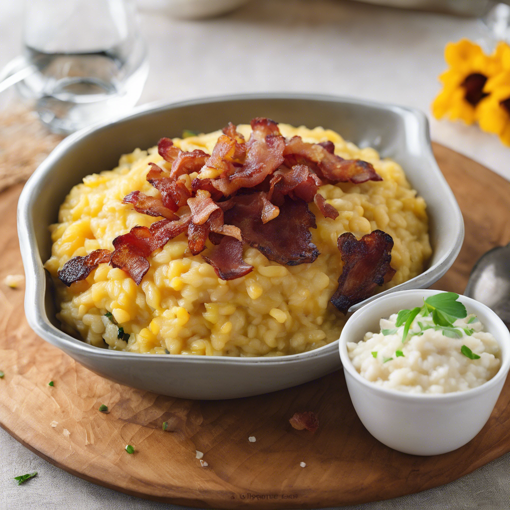 - Divide the risotto among serving plates and top each portion with the crispy bacon. Serve hot and enjoy!
