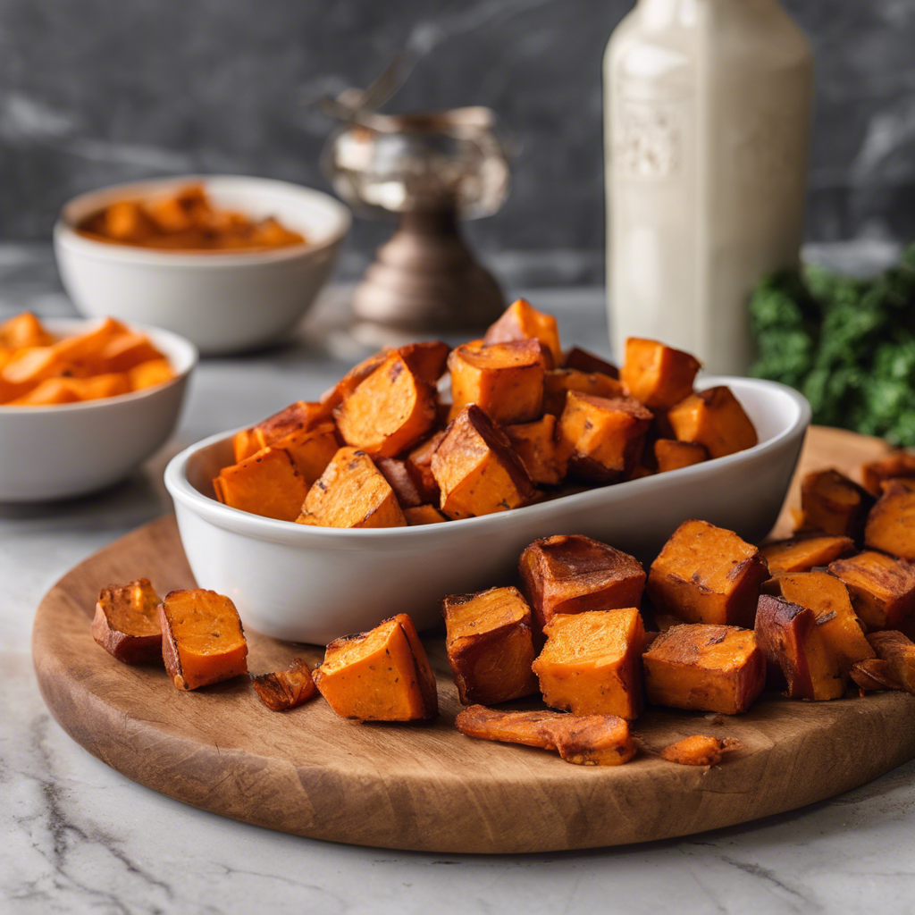 The history of Air Fried Sweet Potato Cubes with garlic aioli dip can be traced back to the fusion of traditional sweet potato dishes and modern air frying techniques. This innovative dish combines the natural sweetness of sweet potatoes with the crispy texture achieved through air frying. The addition of a creamy and garlicky aioli dip elevates the flavor profile, making it a popular choice for those seeking a healthier alternative to traditional fries. Chefs in regions known for their culinary creativity, such as California and the Pacific Northwest, have embraced this dish, incorporating it into their menus as a flavorful and guilt-free indulgence. The best versions of this dish can be found in trendy farm-to-table restaurants and food trucks that prioritize fresh, locally sourced ingredients. To achieve the perfect balance of flavors and textures, it's essential to select high-quality sweet potatoes and master the art of air frying to achieve that coveted crispy exterior. Additionally, the garlic aioli dip should be rich and creamy with a pronounced garlic punch to complement the sweetness of the potatoes. For those who prefer a different cooking method, an alternative to air frying is oven roasting, which can yield similarly delicious results. Whether enjoyed as a snack, appetizer, or side dish, Air Fried Sweet Potato Cubes with garlic aioli dip continue to captivate food enthusiasts with their irresistible combination of wholesome ingredients and bold flavors.