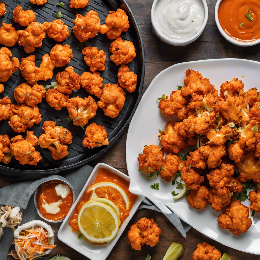 The history of Air Fryer Buffalo Cauliflower dates back to the rise of the air fryer as a popular kitchen appliance. This dish is a healthier, plant-based alternative to traditional buffalo wings, and it gained popularity as a vegetarian and vegan-friendly option for game day snacks and appetizers. Chefs and home cooks alike began experimenting with different ways to prepare cauliflower in the air fryer, and the combination of crispy, tender cauliflower florets with spicy buffalo sauce became a hit. Restaurants in regions known for their love of spicy and flavorful cuisine, such as the American South and Southwest, quickly embraced Air Fryer Buffalo Cauliflower as a menu staple. Today, the best versions of this dish can be found in trendy gastropubs and modern American eateries that prioritize fresh, locally sourced ingredients and innovative cooking techniques. To make the best Air Fryer Buffalo Cauliflower, it's crucial to achieve the perfect balance of crispy texture and bold, tangy flavor. The key lies in properly coating the cauliflower with a seasoned batter before air frying it to golden perfection. The buffalo sauce, made with a combination of hot sauce, butter, and seasonings, should be generously tossed with the cooked cauliflower to ensure every bite is packed with zesty heat. For those without an air fryer, an alternative method involves roasting the cauliflower in the oven until it's crispy, then tossing it in buffalo sauce for a similar result. Whether enjoyed as a game day snack, a party appetizer, or a flavorful side dish, Air Fryer Buffalo Cauliflower continues to be a beloved favorite for those seeking a healthier twist on classic comfort food.