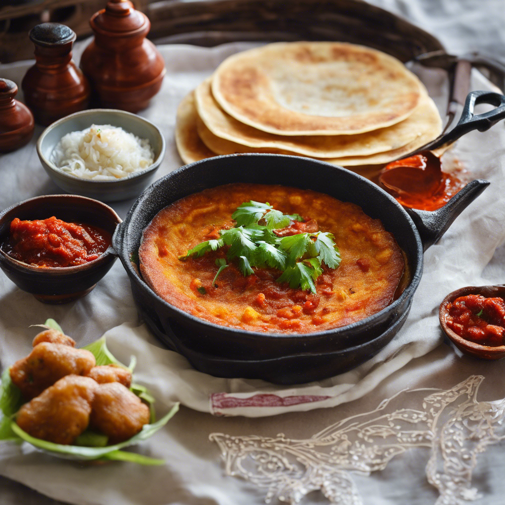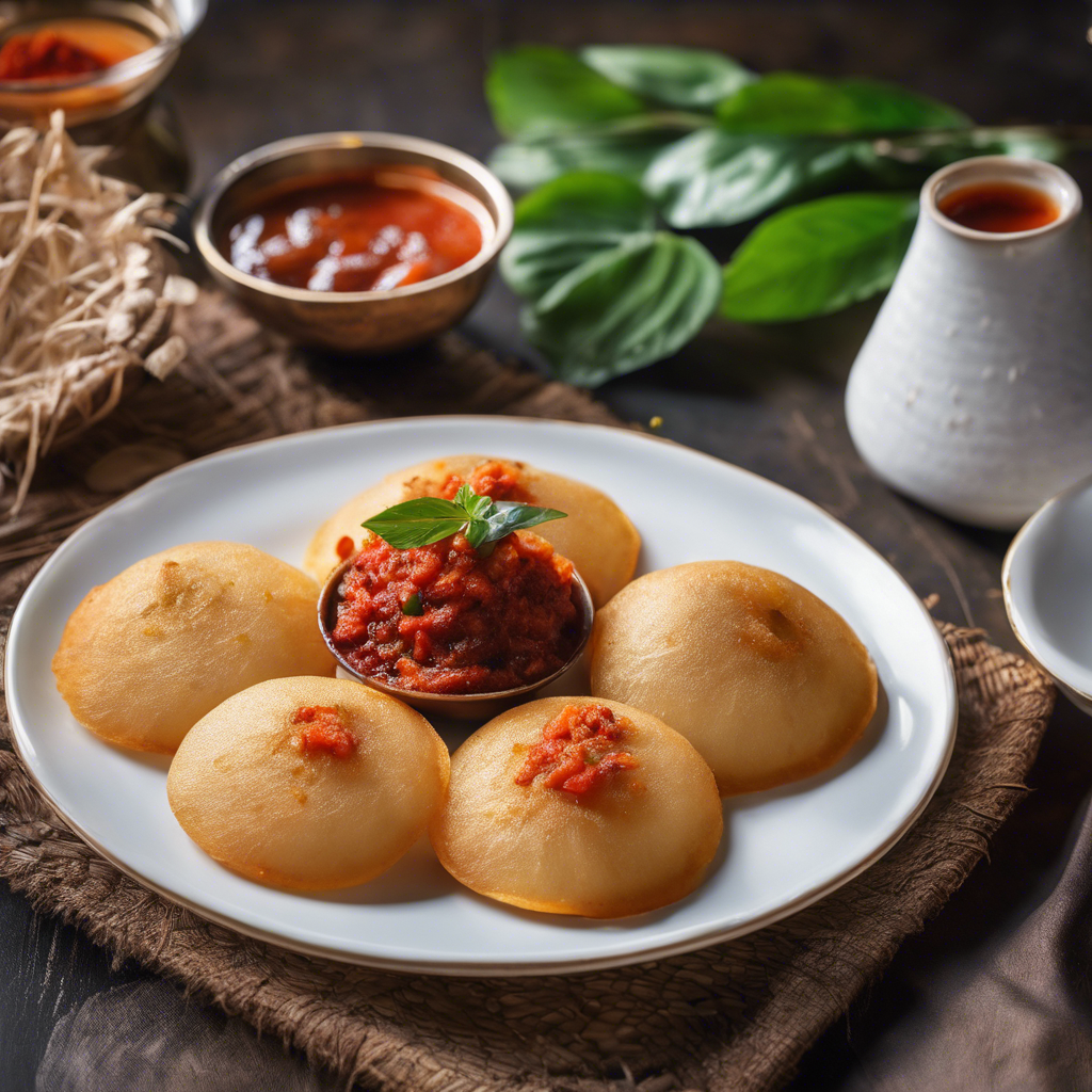 Appam, a popular South Indian dish, has a rich history dating back to the Chola dynasty. This lacy, fermented rice pancake is a staple in Kerala and Tamil Nadu. The dish is traditionally made by expert chefs who skillfully pour the batter into a hot appachatti, creating a crispy edge and a soft center. The spicy tomato chutney, a perfect accompaniment, adds a burst of flavor with its tangy and fiery notes. Some of the best versions of this dish can be found in the quaint local eateries of Kerala, where the appam is served with a generous dollop of the aromatic chutney. The key to a perfect appam lies in achieving the right balance of crispy edges and a fluffy center, while the chutney's heat and tanginess must be perfectly balanced. For a unique twist, some chefs also serve appam with a coconut-based chutney, adding a creamy texture to the dish. Today, the best versions of this dish can be found in the bustling streets of Kerala, where local chefs continue to master the art of creating the perfect appam and spicy tomato chutney.