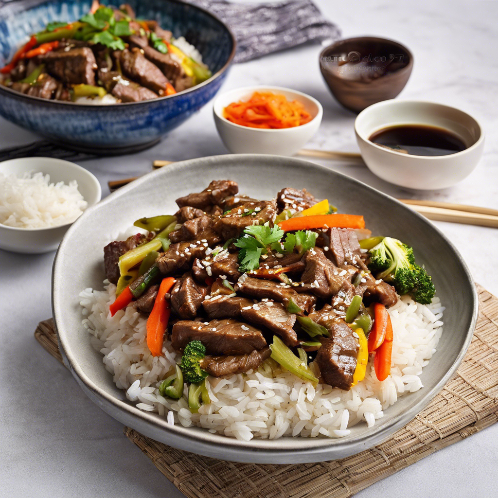 - Divide the cooked rice among serving plates and top with the beef and vegetable stir-fry. Garnish with sliced green onions and sesame seeds. Serve hot and enjoy!
