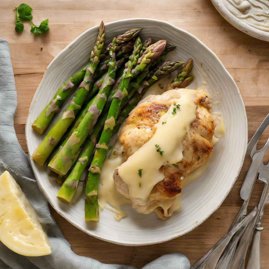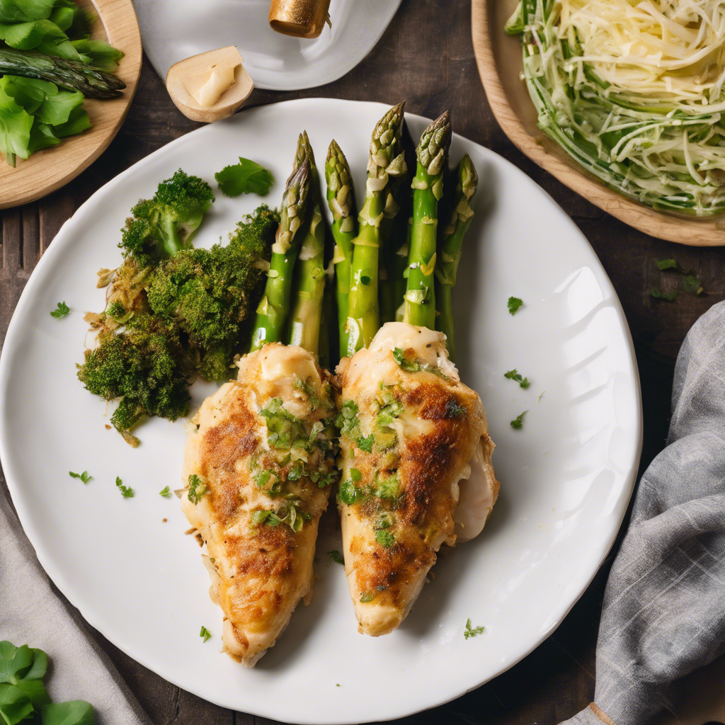 The history of Asparagus and Swiss Cheese Stuffed Chicken dates back to the culinary traditions of Europe, where the combination of tender chicken, flavorful Swiss cheese, and fresh asparagus became a beloved dish. This delectable recipe has been perfected by chefs in regions like Switzerland, France, and Italy, where it is often served as a gourmet delicacy. The succulent chicken breast is carefully stuffed with Swiss cheese and crisp asparagus, creating a harmonious blend of flavors and textures. Today, this dish can be found in upscale restaurants and bistros around the world, with variations that include different types of cheese or additional herbs and spices. For the best version of this dish, it's crucial to use high-quality Swiss cheese and fresh asparagus to achieve the perfect balance of flavors. Whether baked, grilled, or pan-seared, the key is to ensure the chicken is cooked to tender perfection while the cheese melts into a creamy filling, complemented by the vibrant taste of asparagus.