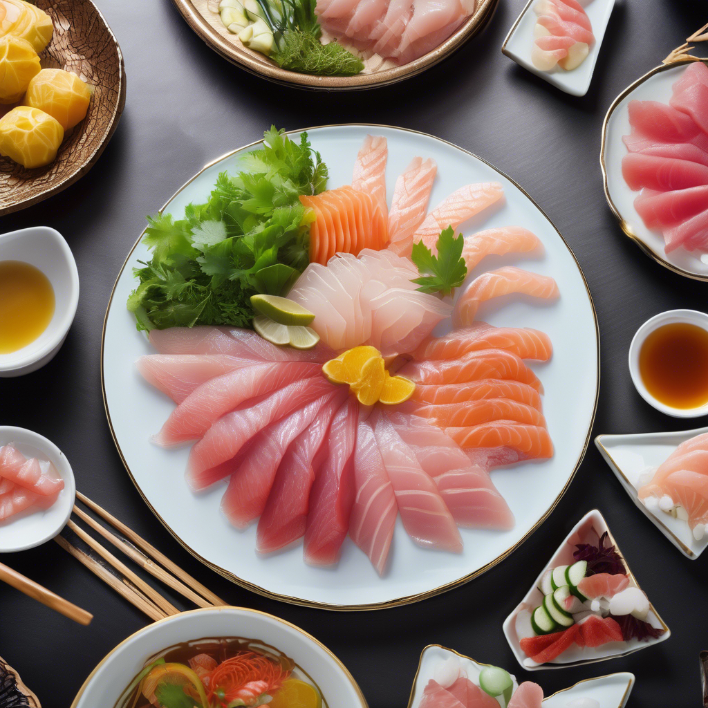 - Enjoy the sashimi with a side of pickled ginger and dipping sauce.