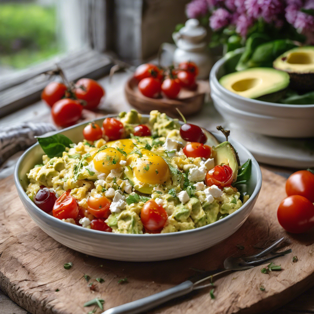 The Avocado and Feta Scramble with added cherry tomatoes is a modern twist on the classic scrambled eggs. This dish has its roots in the Mediterranean region, where fresh and flavorful ingredients are abundant. The creamy avocado, tangy feta cheese, and juicy cherry tomatoes come together to create a burst of flavors in every bite. This dish gained popularity in the brunch scene, with chefs and home cooks alike experimenting with different variations. The addition of cherry tomatoes adds a pop of color and a hint of sweetness to the dish, elevating its overall taste. One of the best versions of this dish can be found in trendy brunch spots in coastal cities, where fresh avocados and cherry tomatoes are readily available. The key to making this dish shine is using ripe avocados and high-quality feta cheese. The creamy texture of the avocado and the salty kick of the feta are essential elements that should not be compromised. For those looking for a famous alternative method, some chefs recommend roasting the cherry tomatoes before adding them to the scramble. This brings out their natural sweetness and adds a depth of flavor to the dish. Overall, the Avocado and Feta Scramble with added cherry tomatoes is a delightful and nutritious breakfast option that has become a staple in modern brunch menus.