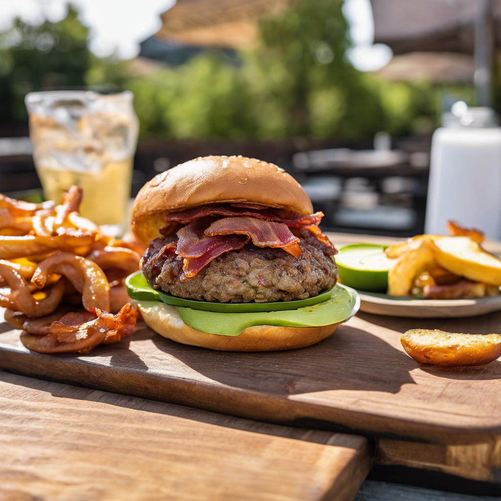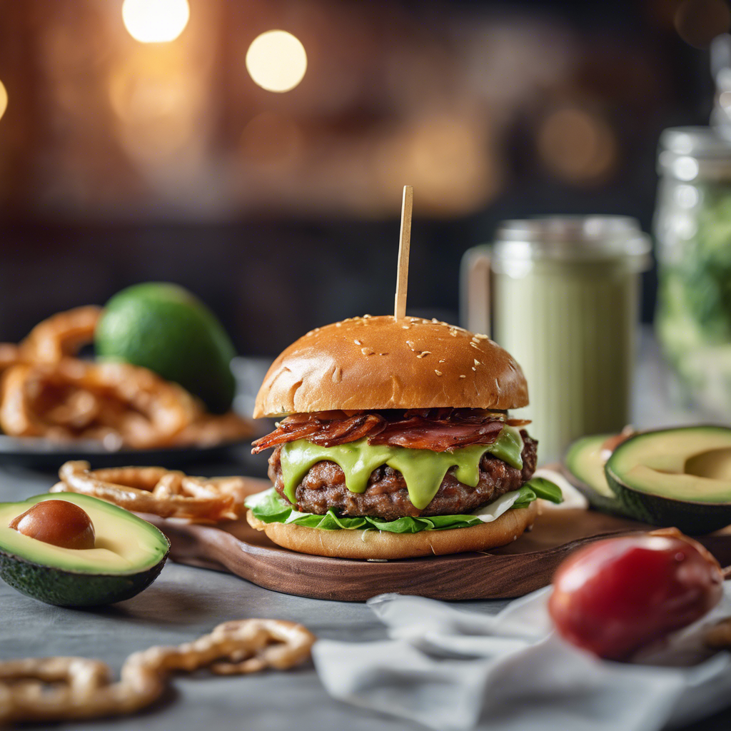 The Avocado Bacon Burger on a pretzel bun has become a beloved classic in the world of gourmet burgers. Originating in the United States, this mouthwatering creation features a juicy beef patty topped with crispy bacon, creamy avocado slices, and a tangy special sauce, all sandwiched between a soft and slightly salty pretzel bun. Renowned chefs across the country have put their own spin on this delectable dish, with variations popping up in trendy burger joints and upscale eateries. The pretzel bun adds a delightful twist, providing a chewy texture and a hint of sweetness that perfectly complements the savory flavors. For the best version of this dish, head to renowned burger spots in cities like New York, Los Angeles, or Chicago. The key to nailing this burger is the quality of the ingredients, especially the ripe avocados and perfectly cooked bacon. Alternatively, some chefs have experimented with adding a spicy kick to the special sauce or incorporating different types of cheese for a unique flavor profile. Whether you're a burger aficionado or simply craving a satisfying meal, the Avocado Bacon Burger on a pretzel bun is sure to tantalize your taste buds.