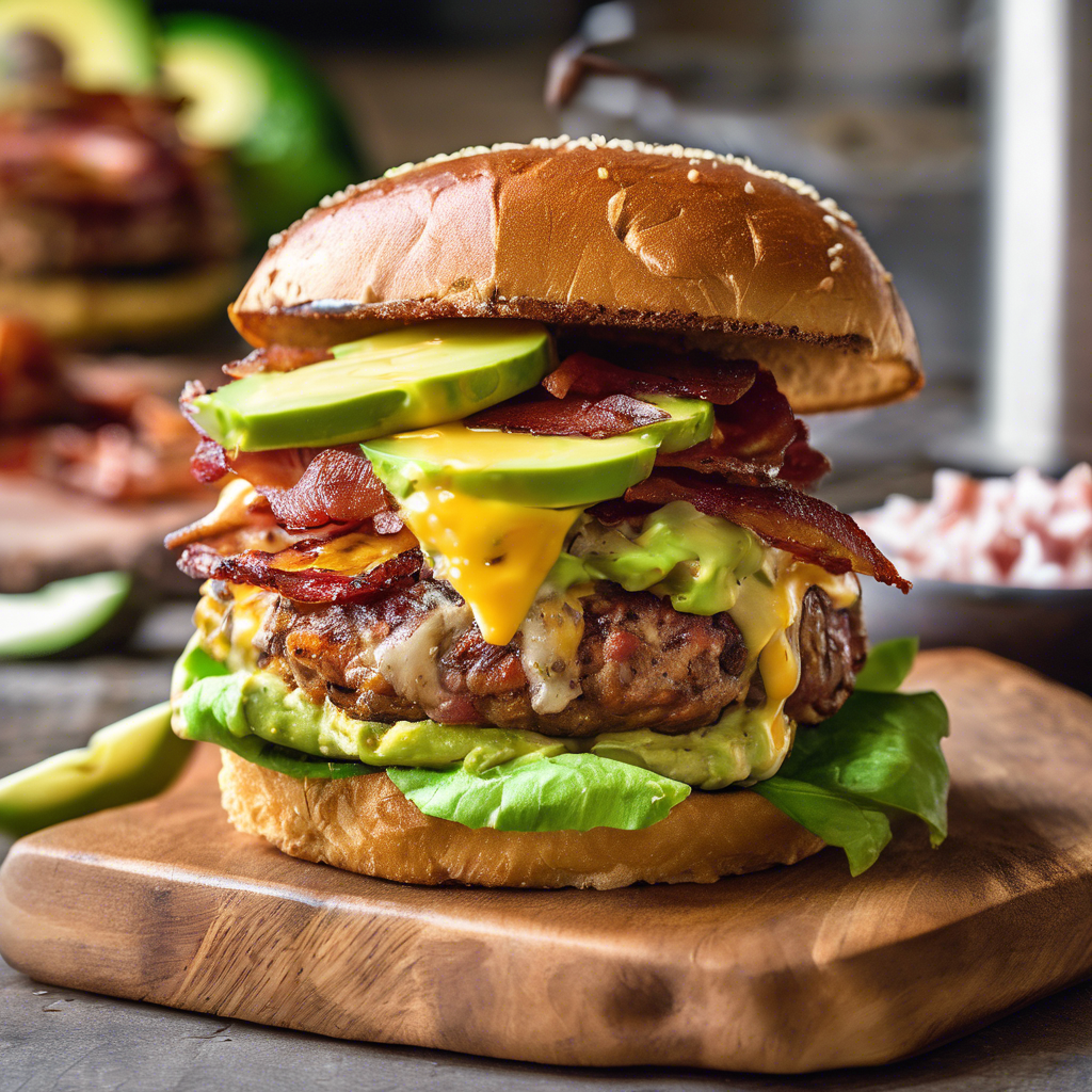 The Avocado Turkey Bacon Burger with extra cheese is a modern twist on the classic burger, featuring a juicy turkey patty topped with crispy bacon, creamy avocado, and an extra layer of gooey cheese. This delectable creation has become a favorite among burger enthusiasts seeking a healthier alternative to traditional beef burgers. Originating in California, this burger gained popularity in health-conscious communities and quickly spread to trendy eateries across the country. Renowned chefs, such as Bobby Flay and Gordon Ramsay, have put their own spin on this dish, elevating it to gourmet status. The key to a perfect Avocado Turkey Bacon Burger lies in the quality of ingredients. Fresh, ripe avocados, lean ground turkey, and a flavorful cheese blend are essential. For a unique twist, some chefs incorporate a tangy aioli or spicy chipotle mayo to enhance the flavors. Today, the best versions of this burger can be found in upscale burger joints and farm-to-table restaurants, where chefs take pride in sourcing the finest ingredients. Whether it's served on a brioche bun or a gluten-free option, the Avocado Turkey Bacon Burger continues to delight diners with its irresistible combination of flavors and textures.