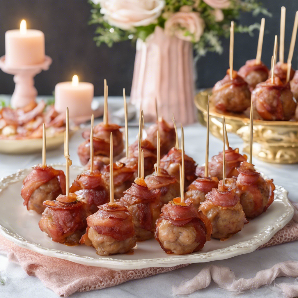 The history of Baby Shower Meatballs wrapped in bacon is a delightful tale of culinary creativity. This dish is believed to have originated in the southern United States, where the tradition of hosting baby showers with lavish spreads of finger foods and appetizers is deeply ingrained. Renowned chefs in the region, such as Chef Paula Deen, have popularized this delectable treat, infusing it with their own unique twists and flavors. The best version of this dish can be found in upscale southern restaurants, where the meatballs are carefully seasoned and wrapped in crispy bacon, creating a perfect blend of savory goodness. The key to mastering this dish lies in the quality of the meatballs and the precise cooking of the bacon, ensuring a mouthwatering experience for all. For a unique twist, some chefs also incorporate a sweet and tangy glaze to elevate the flavors to new heights. Whether served as an appetizer or a main course, Baby Shower Meatballs wrapped in bacon are a true crowd-pleaser, perfect for any occasion.