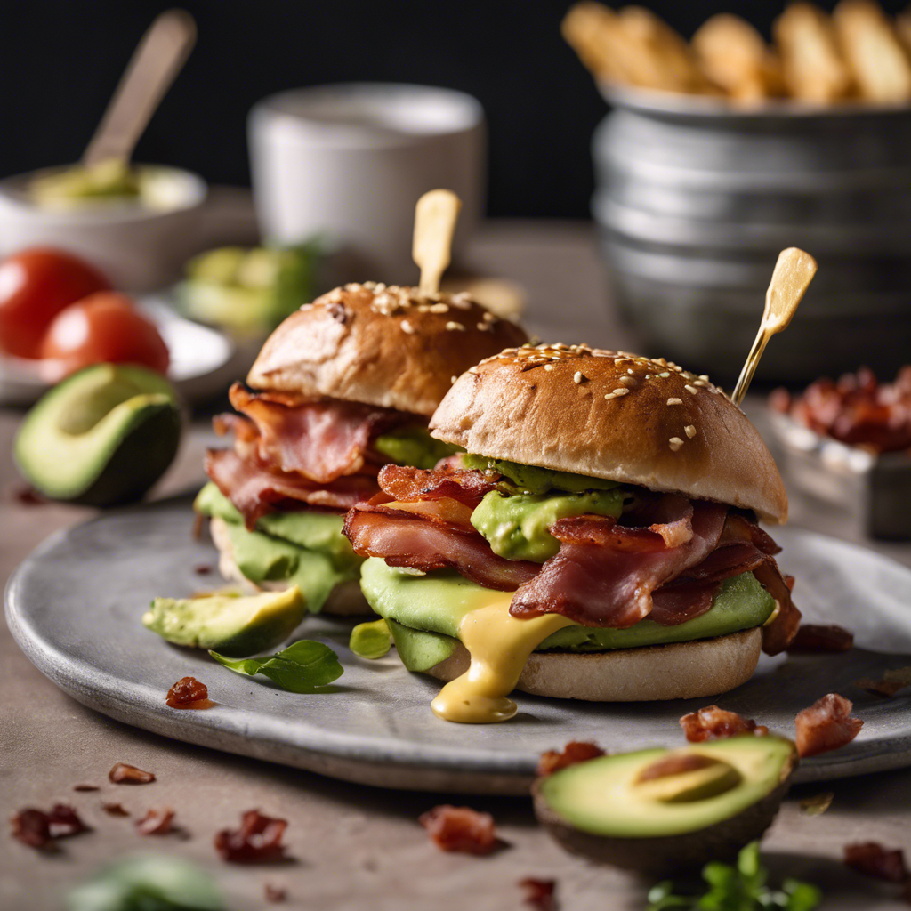 - Assemble the burgers by placing a stuffed patty on the bottom half of each bun. Top with 2 slices of cooked bacon and a few slices of avocado. Place the top half of the bun on top.