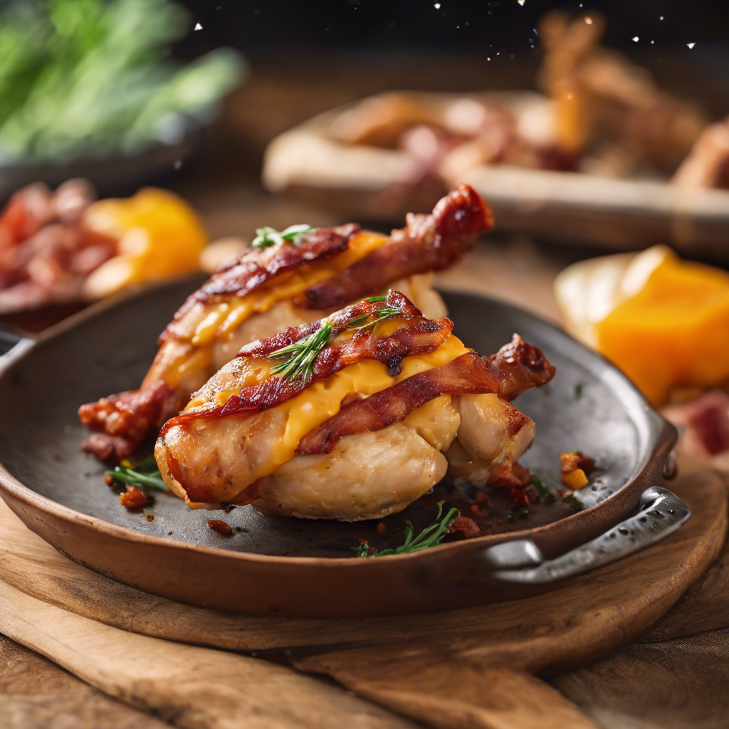 The history of Bacon and Cheddar Stuffed Chicken wrapped in crispy bacon is a tantalizing tale of culinary creativity. This indulgent dish is believed to have originated in the United States, where chefs sought to elevate the classic combination of bacon and cheddar to new heights. The rich, smoky flavor of bacon perfectly complements the sharpness of cheddar, creating a mouthwatering filling for tender chicken breasts. The dish has since become a beloved staple in American comfort food, gracing the menus of esteemed restaurants and home kitchens alike. Today, the best versions of this dish can be found in upscale eateries that prioritize quality ingredients and expert preparation. Achieving the perfect balance of flavors and textures is crucial, making the quality of the bacon and cheddar stuffing paramount. For a unique twist, some chefs may opt to incorporate alternative cheeses or add a hint of spice for an extra kick. Whether enjoyed at a renowned restaurant or prepared at home with care, Bacon and Cheddar Stuffed Chicken wrapped in crispy bacon is a true indulgence for the senses.