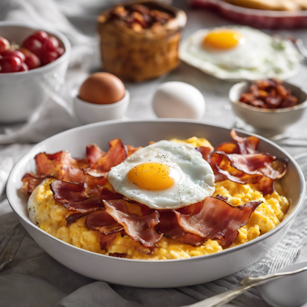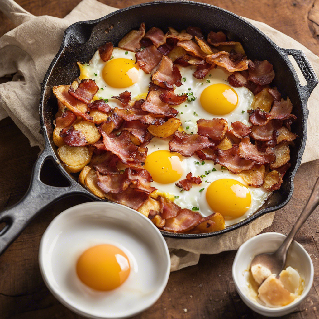 The Bacon and Egg Breakfast Skillet has a rich history dating back to the traditional American breakfasts. This hearty dish gained popularity in the 1920s and has since become a staple in breakfast menus across the country. The sizzling sound of bacon hitting the skillet, the aroma of eggs cooking, and the savory flavors blending together create a comforting and satisfying meal. Chefs in diners and breakfast joints across the United States have perfected their own versions of this classic dish, each adding their unique twist. The best versions of this dish can be found in diners in the Midwest and Southern regions, where the ingredients are fresh and the portions are generous. The key to a perfect Bacon and Egg Breakfast Skillet lies in the quality of the bacon, the freshness of the eggs, and the skillful seasoning. Some chefs also add a variety of vegetables, cheese, or spices to elevate the flavors. For those looking for a famous alternative method, the addition of hash browns or potatoes can create a delightful variation. Whether enjoyed at a bustling diner or homemade in your kitchen, the Bacon and Egg Breakfast Skillet continues to be a beloved breakfast choice for many.