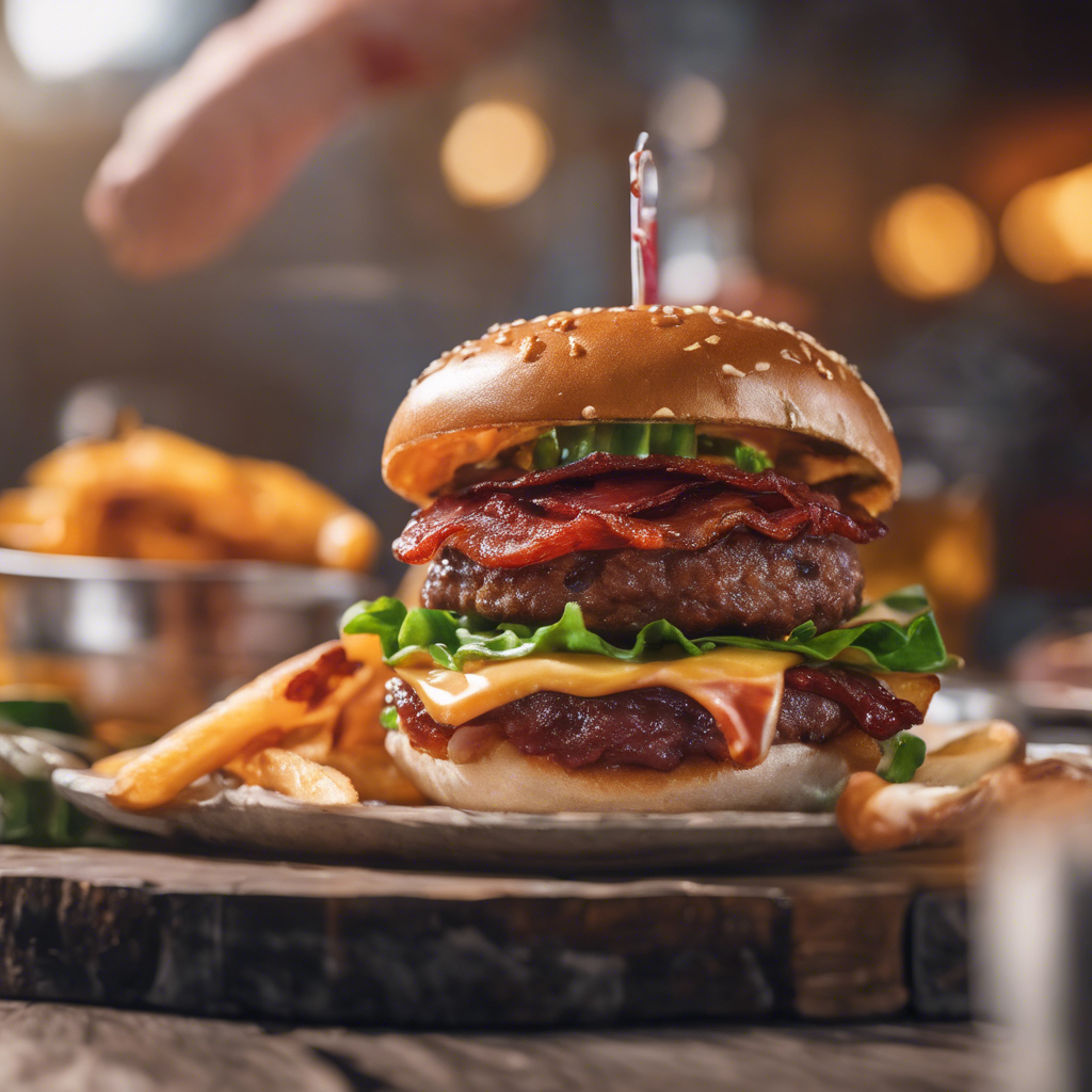 The Bacon BBQ Burger has a rich history dating back to the 20th century, when it emerged as a popular American comfort food. This mouthwatering creation features a juicy beef patty topped with crispy bacon, melted cheese, and a generous slathering of tangy barbecue sauce, all nestled between a soft, toasted bun. Renowned chefs across the United States, particularly in the Southern and Midwestern regions, have put their own unique spin on this classic dish, elevating it to new heights. Today, some of the best versions of this delectable burger can be found in iconic diners and barbecue joints, where the smoky flavors and perfect char on the patty are essential. Whether grilled or pan-fried, the key to a stellar Bacon BBQ Burger lies in achieving the ideal balance of savory, smoky, and sweet flavors.