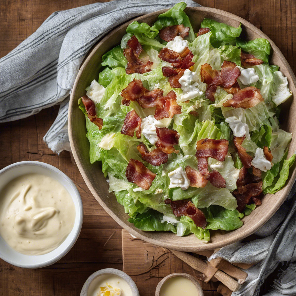 - In a large salad bowl, combine 1 head of chopped romaine lettuce, 1/2 cup of bacon bits, and 1/2 cup of croutons.