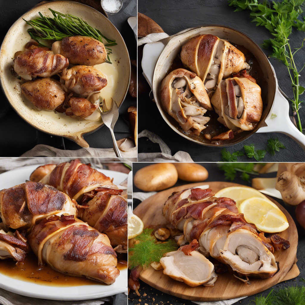 The Bacon-Wrapped Mushroom and Swiss Stuffed Chicken is a mouthwatering dish that has become a staple in the world of gourmet cuisine. This delectable creation features tender chicken breasts stuffed with earthy mushrooms and rich Swiss cheese, then wrapped in savory bacon for an explosion of flavors in every bite. The dish has its roots in classic French and American culinary traditions, with a modern twist that has made it a favorite in upscale restaurants and home kitchens alike. Chefs across the globe have put their own spin on this dish, adding unique seasonings and cooking techniques to elevate its taste. The best versions of this dish can be found in renowned restaurants in France, Switzerland, and the United States, where chefs take pride in sourcing the finest ingredients and perfecting the art of stuffing and wrapping the chicken to achieve a harmonious balance of flavors and textures. To make this dish shine, it's crucial to use high-quality bacon, fresh mushrooms, and creamy Swiss cheese, as well as mastering the cooking process to ensure the chicken is juicy and the bacon is crispy. For a twist on the traditional recipe, some chefs opt for grilling or roasting the chicken instead of pan-searing it, adding a smoky depth to the dish. Whether enjoyed in a Michelin-starred restaurant or prepared at home with a personal touch, the Bacon-Wrapped Mushroom and Swiss Stuffed Chicken is a culinary delight that continues to captivate food enthusiasts around the world.