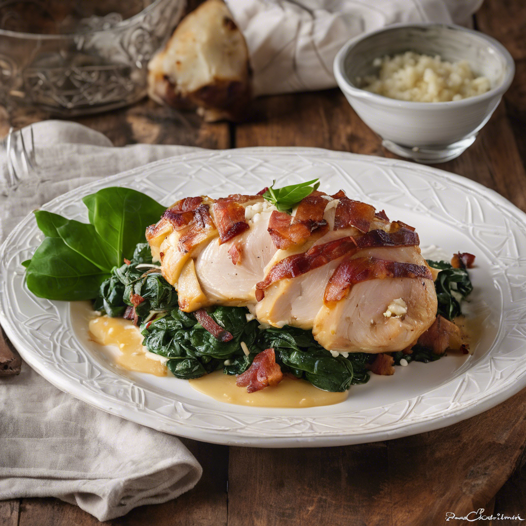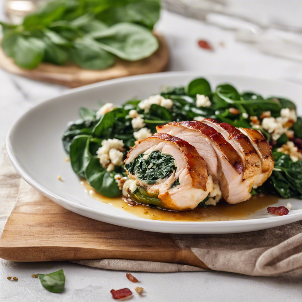The Bacon Wrapped Spinach and Feta Stuffed Chicken Breast is a mouthwatering dish that has gained popularity for its delicious combination of flavors and textures. This dish is believed to have originated in the United States, where it has become a staple on many restaurant menus and home kitchens. The succulent chicken breast is stuffed with a savory mixture of spinach and feta cheese, then wrapped in crispy bacon to create a perfect balance of smoky, salty, and creamy flavors. This dish has been celebrated by chefs for its versatility and ability to cater to a wide range of palates. One of the key elements of this dish is the quality of the ingredients. The chicken should be tender and juicy, the bacon should be crispy, and the spinach and feta filling should be well-seasoned and flavorful. The dish is often served with a side of roasted vegetables or a light salad to complement the rich flavors of the chicken. While this dish can be found in many restaurants across the country, some of the best versions can be enjoyed in upscale eateries known for their attention to detail and high-quality ingredients. Chefs who have mastered the art of preparing this dish often take pride in sourcing the finest ingredients and perfecting the cooking technique to ensure a memorable dining experience. For those looking to recreate this dish at home, it's important to pay close attention to the cooking process to ensure that the chicken is cooked through while the bacon remains crispy. Additionally, experimenting with different seasonings and herbs can add a unique twist to the traditional recipe. Overall, the Bacon Wrapped Spinach and Feta Stuffed Chicken Breast is a beloved dish that continues to delight food enthusiasts with its indulgent flavors and elegant presentation. Whether enjoyed at a fine dining establishment or prepared at home, this dish is sure to leave a lasting impression.