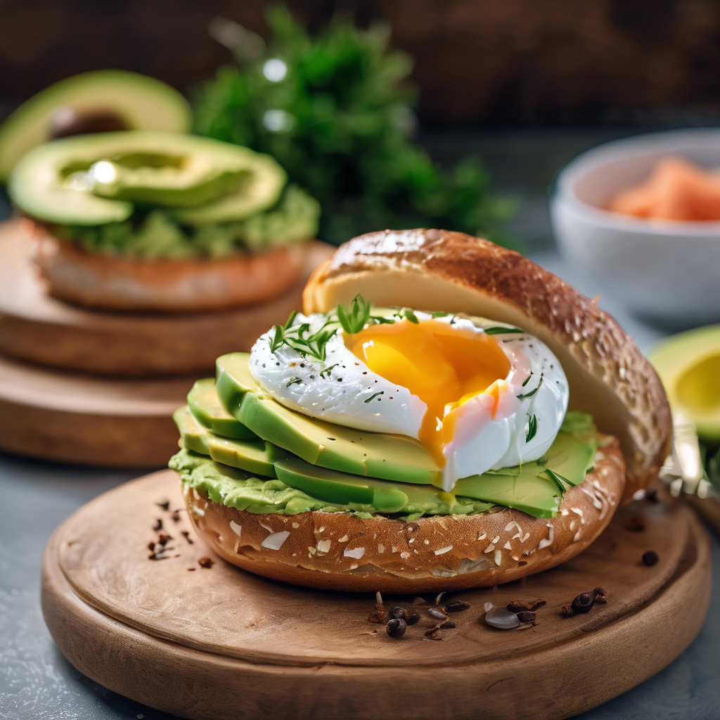 The bagel with avocado, smoked salmon, and a poached egg is a modern twist on a classic breakfast dish. This delectable creation combines the rich, creamy texture of avocado with the smoky flavor of salmon, all topped off with a perfectly poached egg. The dish has its roots in the bustling brunch scenes of cosmopolitan cities like New York and Los Angeles, where innovative chefs sought to elevate the traditional bagel and lox. Today, this dish can be found in trendy cafes and brunch spots across the globe, with each chef adding their own unique flair to the recipe. For the best version of this dish, look for a bagel that is freshly baked, a perfectly ripe avocado, high-quality smoked salmon, and a flawlessly poached egg. The combination of these ingredients creates a harmonious blend of flavors and textures that is sure to delight the palate.