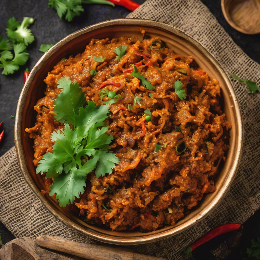Baingan Bharta, a traditional Indian dish, has a rich history dating back to the Mughal era. This smoky, spicy eggplant delicacy originated in the Punjab region, where it was prepared by skilled chefs in royal kitchens. The dish gained popularity across the Indian subcontinent due to its robust flavors and aromatic spices. Today, it is a staple in North Indian cuisine and is enjoyed in homes and restaurants alike. The key to a perfect Baingan Bharta lies in roasting the eggplant to impart a smoky flavor and using a blend of spices such as cumin, coriander, and garam masala for an extra kick. For the best version of this dish, head to renowned Punjabi restaurants or explore local eateries in Delhi or Amritsar. To elevate the flavors, consider adding extra spices like red chili powder or kasuri methi (dried fenugreek leaves) for an irresistible twist on this classic recipe.