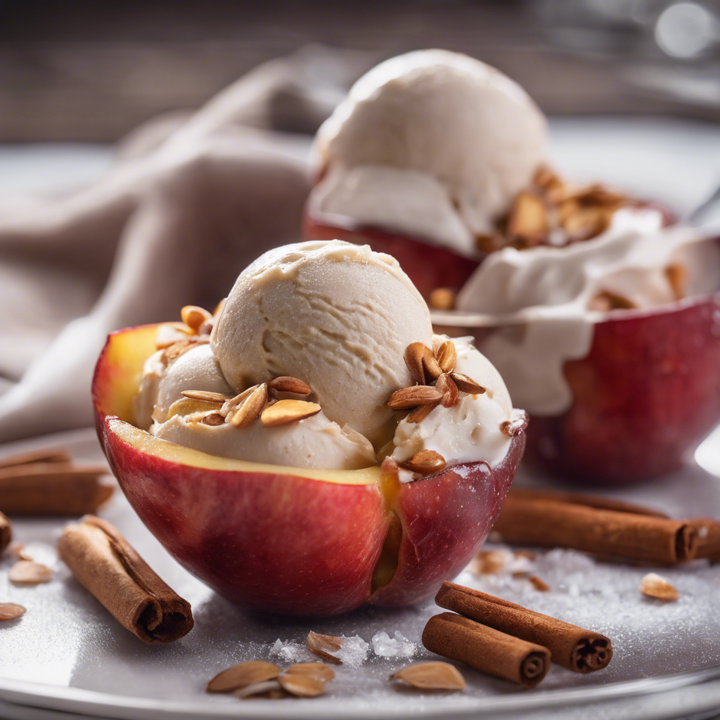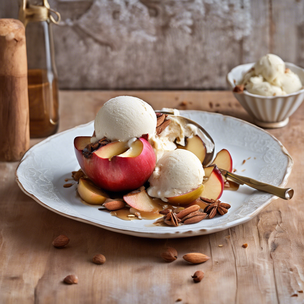 - Serve each baked apple with a scoop of almond ice cream on the side, and enjoy!
