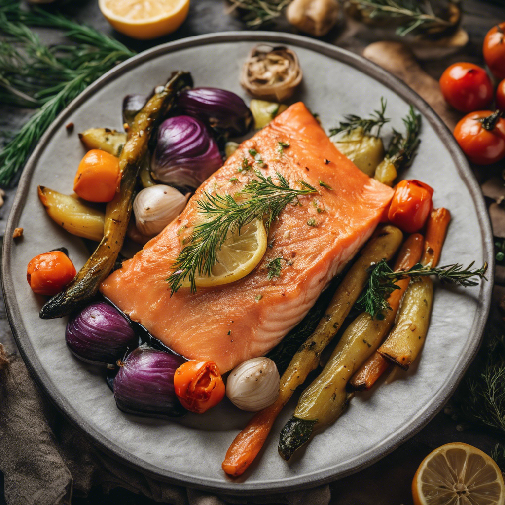 - Serve the baked arctic char with the roasted vegetables on the side. Enjoy!