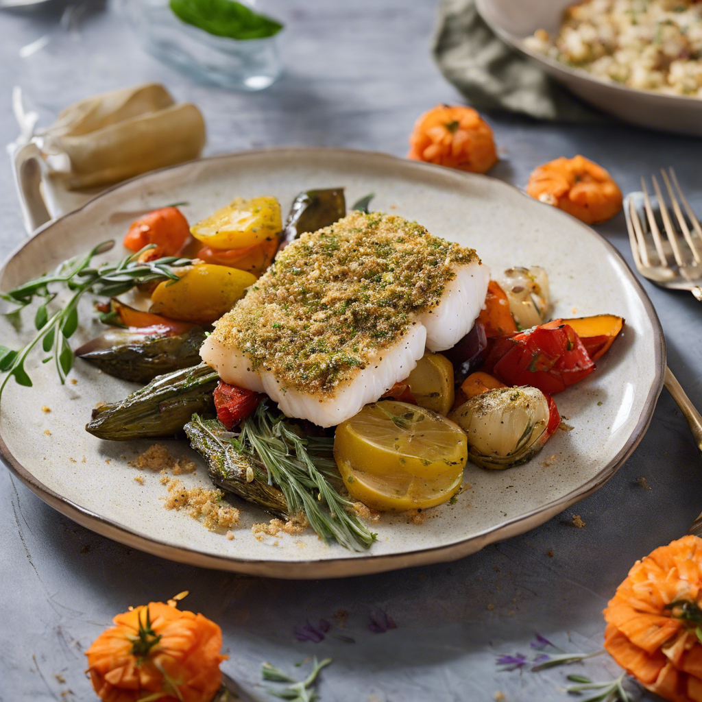 Herbed Crusted Baked Cod with Roasted Vegetables