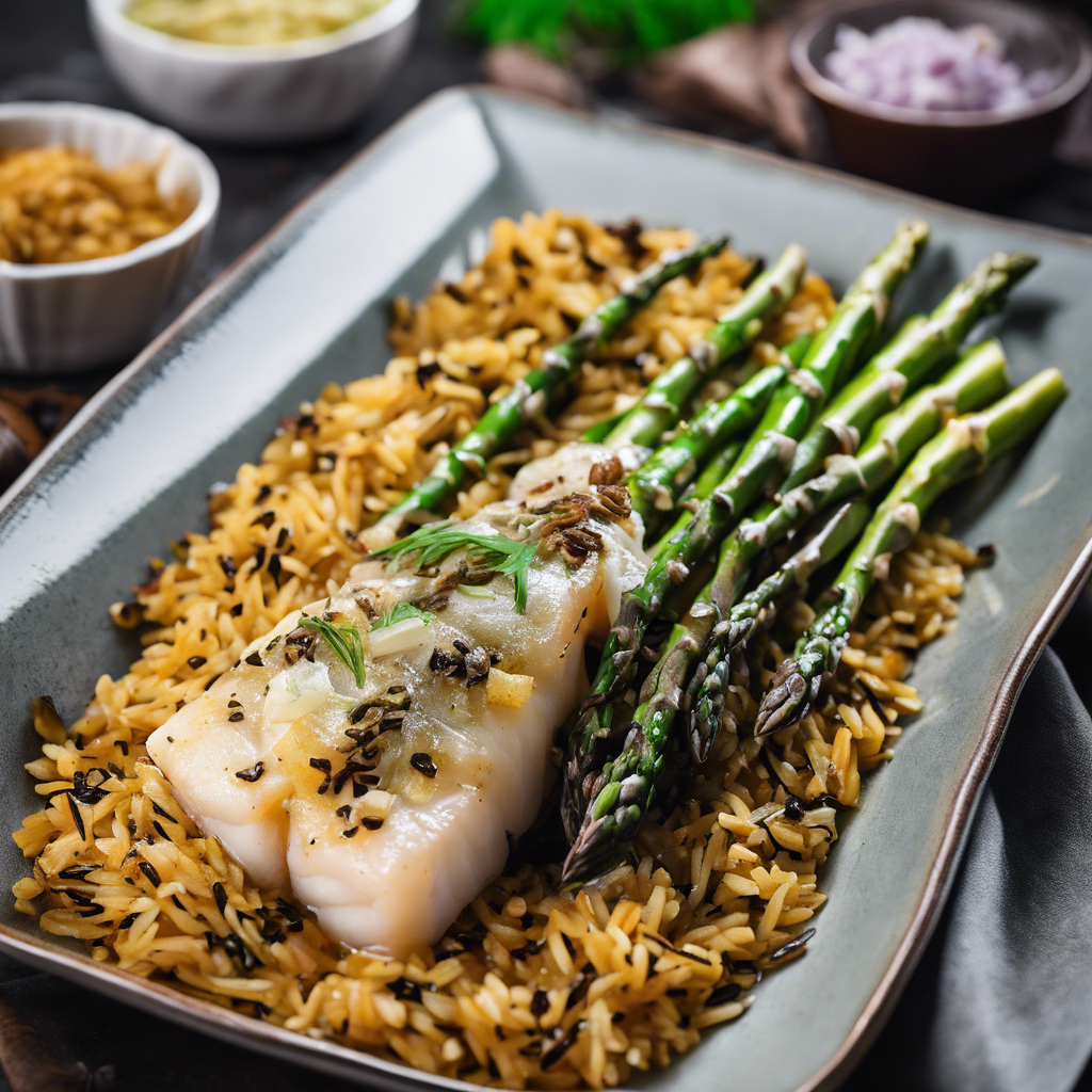 Baked Cod with Wild Rice and Steamed Asparagus is a classic dish that has its roots in the coastal regions of Scandinavia and the Mediterranean. The dish features a flaky cod fillet, seasoned with herbs and spices, then baked to perfection. The wild rice adds a nutty flavor and chewy texture, while the steamed asparagus provides a crisp and fresh contrast. This dish has been a staple in seafood restaurants and fine dining establishments for its simplicity and elegance. Chefs often emphasize the importance of using fresh, high-quality cod and properly cooked wild rice to bring out the best flavors. For a twist, some chefs may opt for grilling the cod or adding a citrus-infused marinade. Today, the best versions of this dish can be found in coastal regions known for their fresh seafood, such as Scandinavia, the Mediterranean, and the Pacific Northwest.