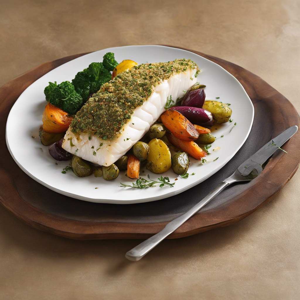Baked Halibut with Herb Crust is a classic dish that has been enjoyed for centuries. The dish originated in the coastal regions of Europe, where fresh halibut was readily available. The herb crust, made with a blend of fresh herbs such as parsley, thyme, and dill, adds a burst of flavor to the delicate fish. The dish is often accompanied by a medley of roasted vegetables, such as carrots, zucchini, and bell peppers, which complement the rich, flaky halibut. Chefs in coastal regions, such as those in Italy, France, and Spain, have perfected the art of preparing Baked Halibut with Herb Crust, using locally sourced herbs and vegetables to enhance the dish's flavors. Today, this dish can be found in fine dining restaurants around the world, with each chef adding their own unique twist to the recipe. To make the best Baked Halibut with Herb Crust, it's essential to use the freshest halibut available. The herb crust should be generously seasoned with salt and pepper to bring out the flavors of the herbs. Additionally, the roasted vegetables should be cooked to perfection, with a slight caramelization to enhance their natural sweetness. For a unique twist on this classic dish, some chefs opt to grill the halibut instead of baking it, adding a smoky flavor to the fish. Regardless of the cooking method, Baked Halibut with Herb Crust remains a timeless favorite, celebrated for its simplicity and exquisite flavors.