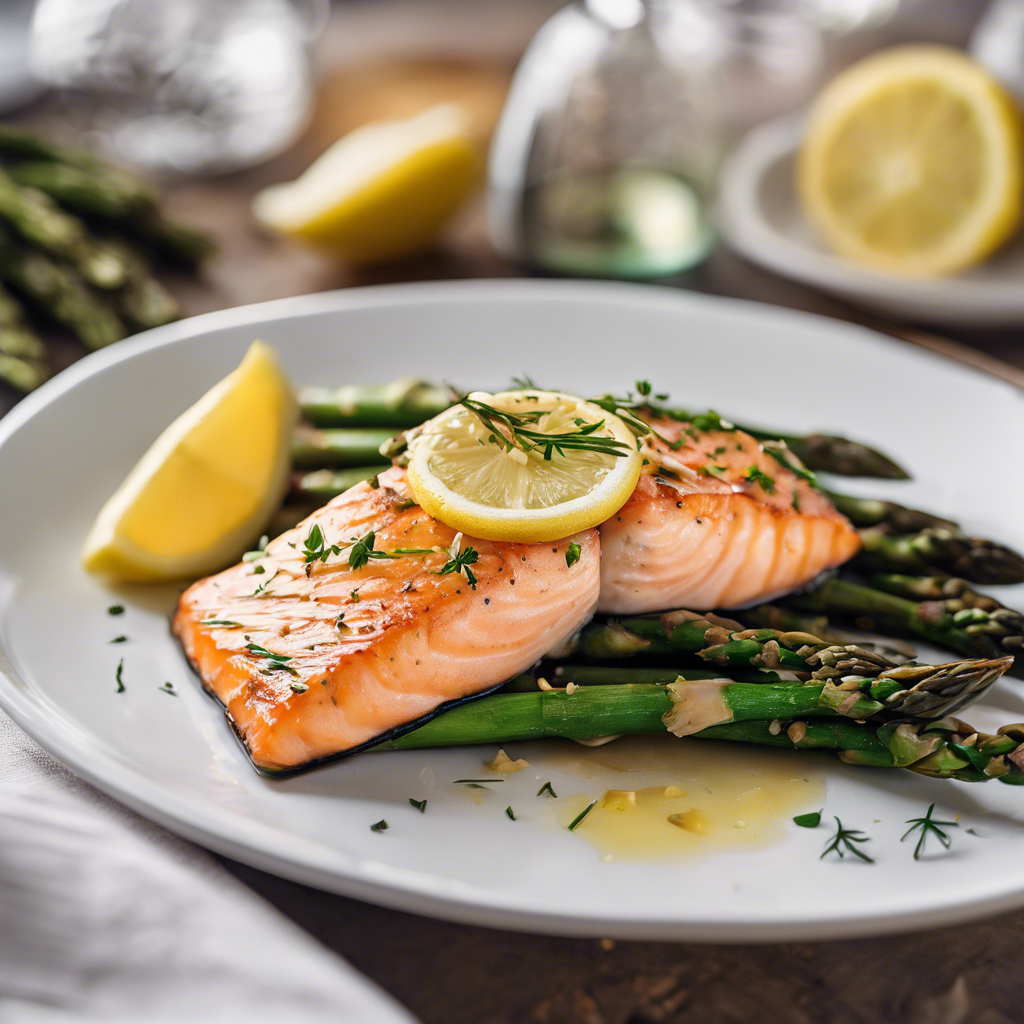 The history of Baked Lemon Garlic Salmon served with roasted asparagus is a tale of culinary excellence and timeless flavors. This dish has its roots in the coastal regions of the Mediterranean, where fresh seafood and vibrant vegetables are abundant. Renowned chefs like Jamie Oliver and Ina Garten have popularized this recipe, infusing it with their unique twists and techniques. The succulent salmon is marinated in a zesty blend of lemon, garlic, and herbs, then baked to tender perfection. The roasted asparagus, with its crispy edges and tender stalks, complements the salmon beautifully, adding a delightful crunch and earthy flavor to the dish. Today, this delectable dish can be savored in top seafood restaurants along the Mediterranean coast, where the freshest catch meets locally sourced asparagus for an unforgettable dining experience. The key to perfecting this dish lies in sourcing the freshest salmon and asparagus, as well as mastering the art of balancing the citrusy tang of lemon with the savory notes of garlic. For a unique twist, some chefs also grill the salmon and asparagus, infusing them with a smoky charred flavor that adds depth to the dish. Whether baked or grilled, this classic combination of Baked Lemon Garlic Salmon and roasted asparagus continues to delight food enthusiasts around the world.