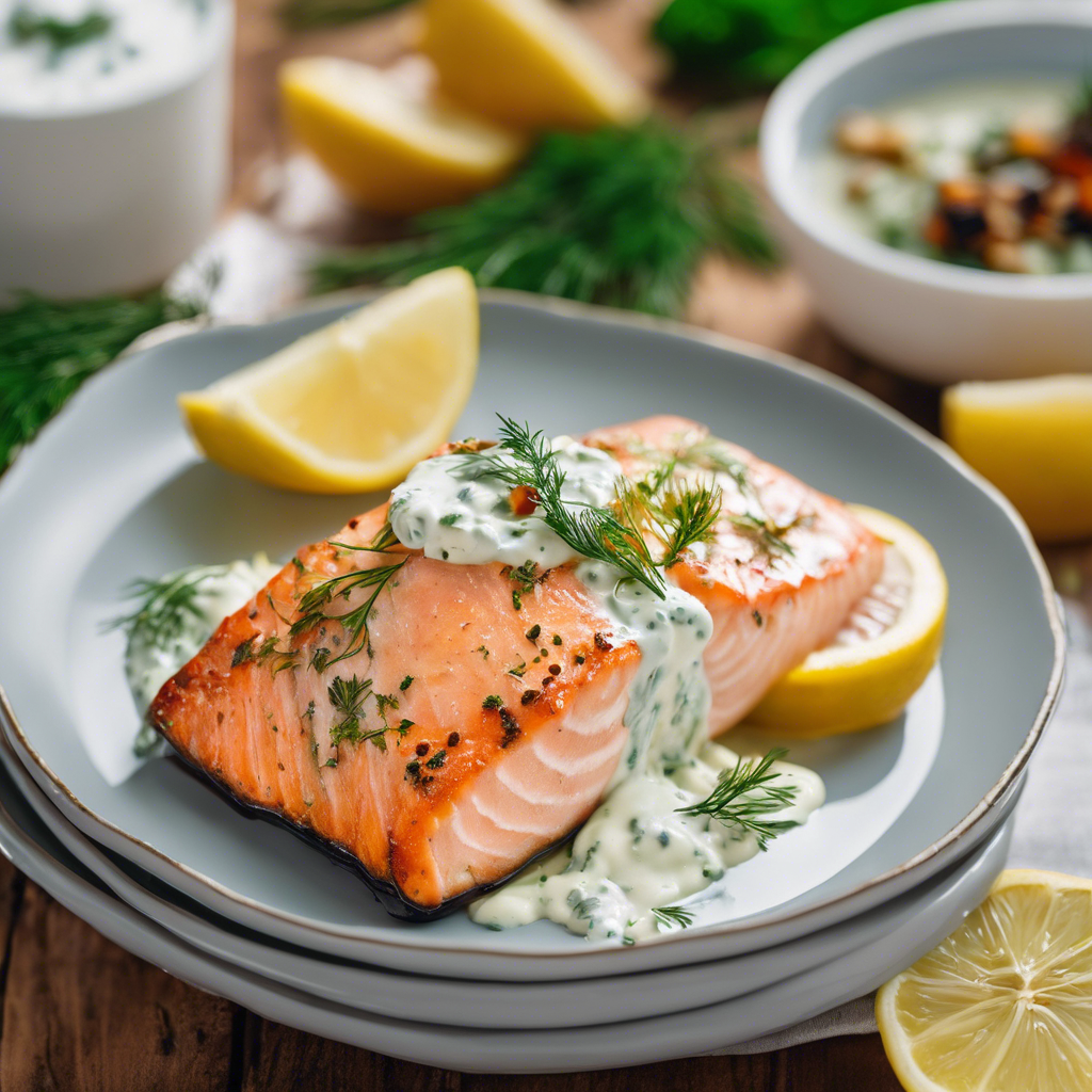 The Baked Lemon Garlic Salmon with a dill yogurt sauce is a delightful dish that combines the freshness of salmon with the zesty flavors of lemon and garlic, topped with a creamy and herby dill yogurt sauce. This dish has its roots in Mediterranean cuisine, where the use of fresh herbs and citrus flavors is prominent. Renowned chefs like Ina Garten and Gordon Ramsay have popularized this recipe, adding their own unique twists. The best version of this dish can be found in coastal regions where fresh salmon is abundant, such as the Pacific Northwest in the United States or Scandinavia. The key to perfecting this dish lies in sourcing high-quality salmon and using fresh, vibrant ingredients for the marinade and sauce. For a unique twist, some chefs also grill the salmon instead of baking it, adding a smoky flavor to the dish. Whether baked or grilled, this dish is a must-try for seafood lovers.