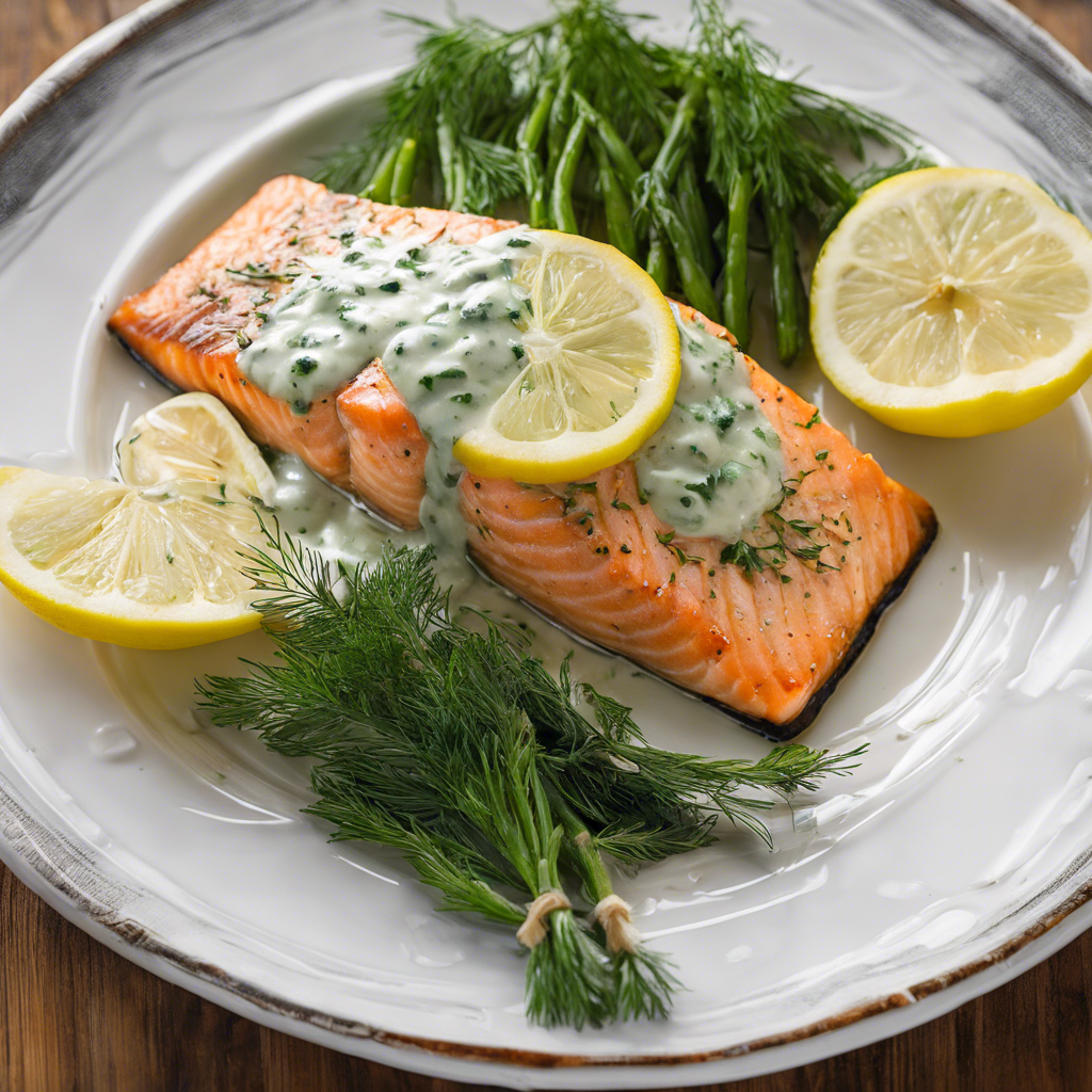 - Serve the baked salmon with the lemon-dill sauce drizzled on top. Enjoy!