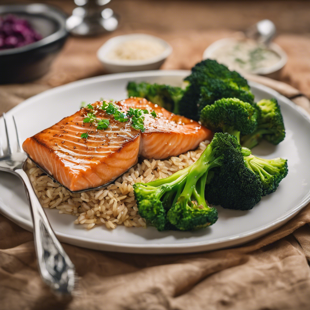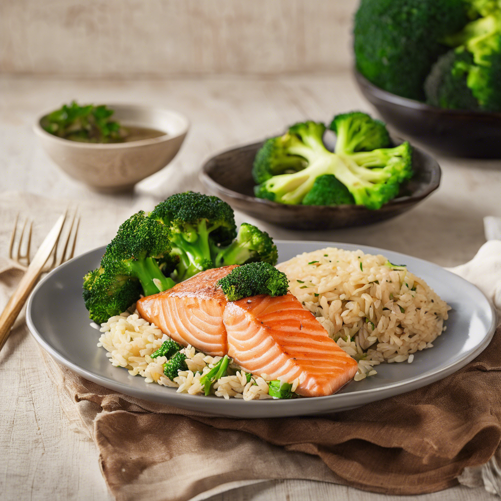 Baked Salmon with Brown Rice and Steamed Broccoli