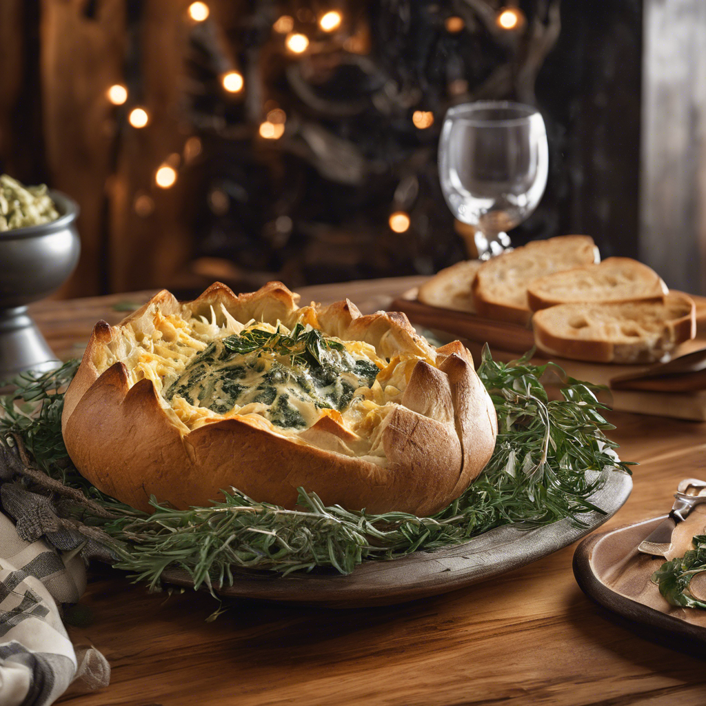 Spicy Baked Spinach and Artichoke Dip Bread Bowl