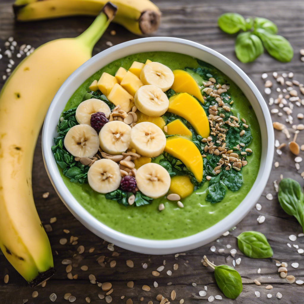 The Banana Mango Smoothie Bowl with added spinach is a vibrant and nutritious dish that has gained popularity in the health food scene. This innovative twist on the classic smoothie bowl adds a boost of vitamins and minerals from the spinach, making it a powerhouse of nutrients. Chefs and health enthusiasts have embraced this recipe, blending ripe bananas, sweet mangoes, and fresh spinach to create a creamy and luscious base. This dish has become a staple in wellness-focused cafes and restaurants, particularly in regions known for their emphasis on healthy living, such as California and Hawaii. The best versions of this dish prioritize using ripe, high-quality fruits and fresh spinach to achieve the perfect balance of sweetness and earthy flavors. For those looking to explore alternative methods, adding a splash of coconut water or a sprinkle of chia seeds can elevate the texture and nutritional profile of the smoothie bowl. Whether enjoyed as a refreshing breakfast or a post-workout treat, the Banana Mango Smoothie Bowl with added spinach is a delightful way to nourish the body and indulge in tropical flavors.