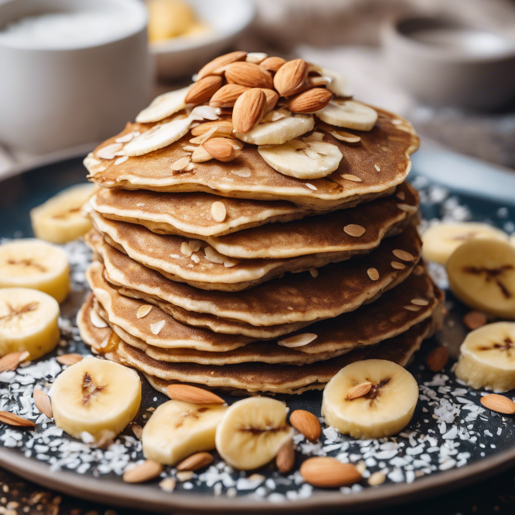 Banana Oat Pancakes with Sliced Almonds and Coconut Flakes