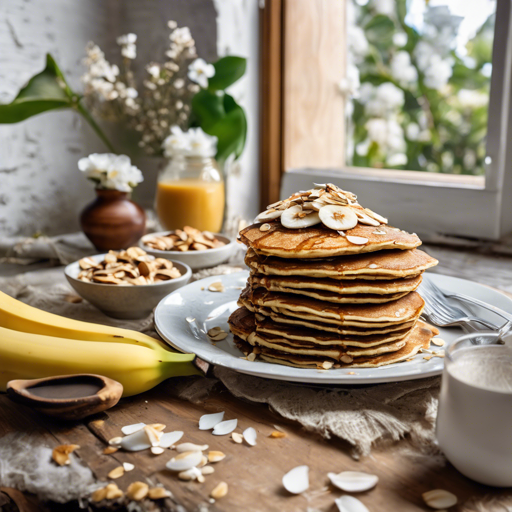 - Enjoy your delicious and healthy banana oat pancakes with sliced almonds and coconut flakes!