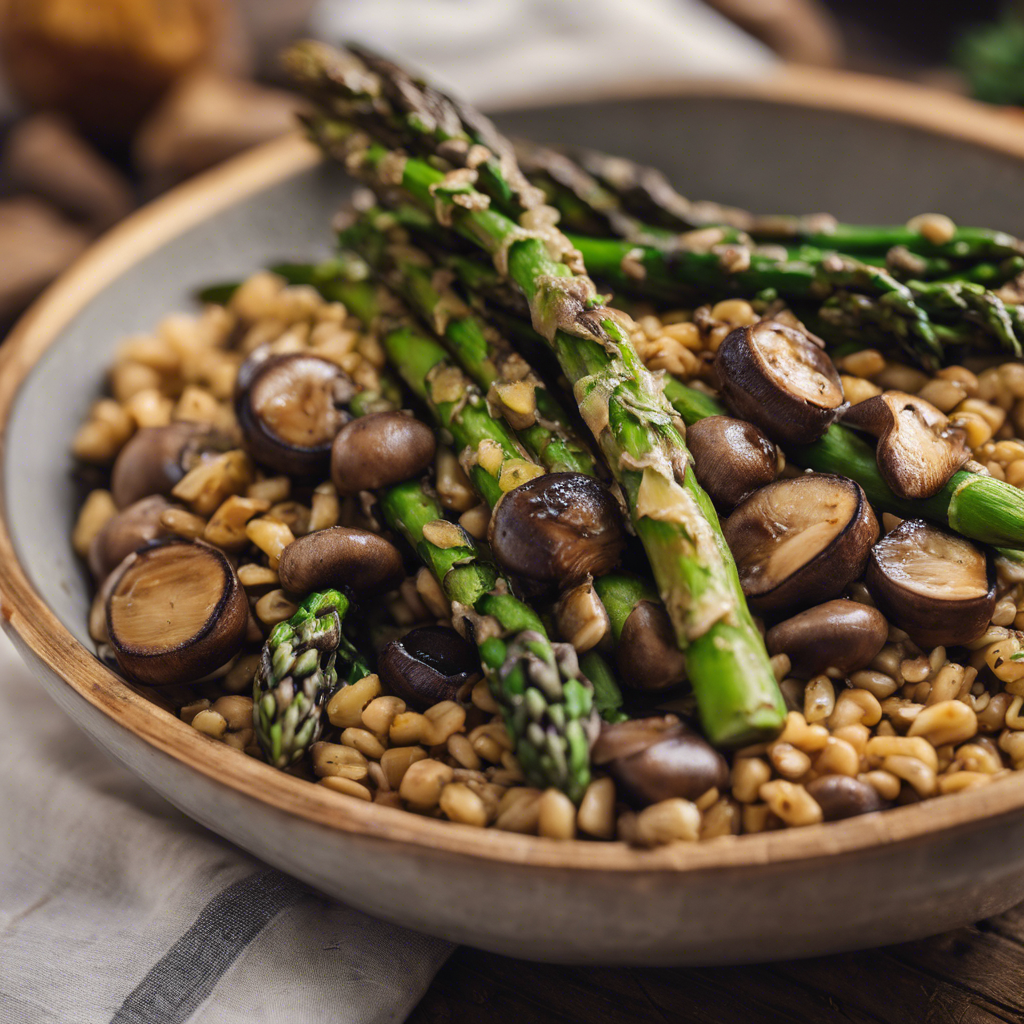 Roasted Asparagus and Sautéed Mushroom Barley Bowl