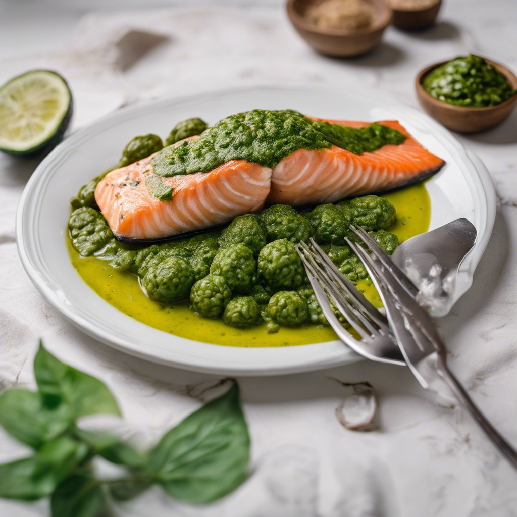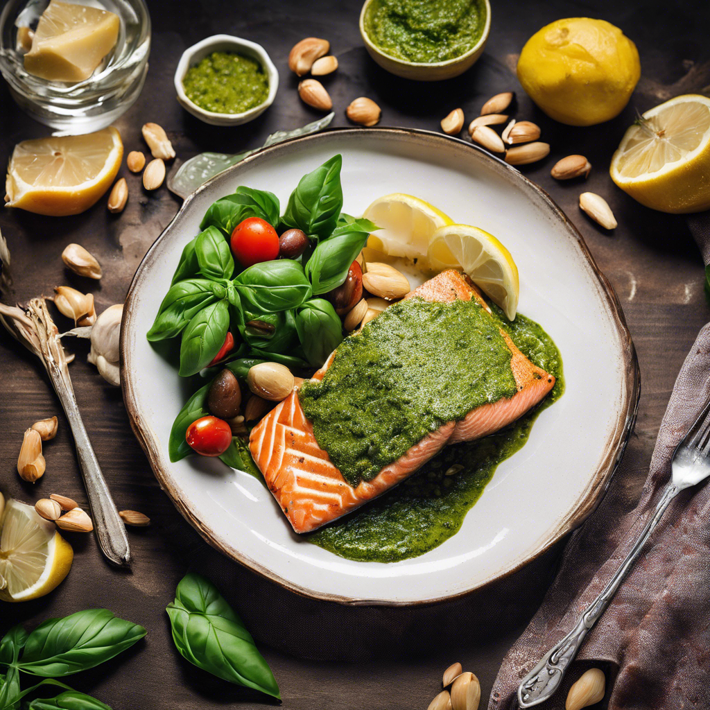 Basil Pesto Salmon is a delectable dish that combines the rich, buttery flavor of salmon with the vibrant, aromatic taste of basil pesto. This dish has its origins in Italian cuisine, where the use of fresh herbs and high-quality seafood is a culinary tradition. The dish gained popularity in the United States as a fusion of Italian and American flavors. Renowned chefs like Jamie Oliver and Ina Garten have popularized their own versions of this dish, incorporating their unique twists. Today, the best Basil Pesto Salmon can be found in upscale Italian restaurants or seafood eateries that prioritize using fresh, high-quality ingredients. The key to perfecting this dish lies in the balance of the basil pesto, ensuring it complements the salmon without overpowering its natural flavors. For a twist, some chefs also incorporate pine nuts or Parmesan cheese into the pesto for added depth. Whether grilled, baked, or pan-seared, Basil Pesto Salmon is a delightful dish that showcases the harmonious marriage of Italian and seafood flavors.
