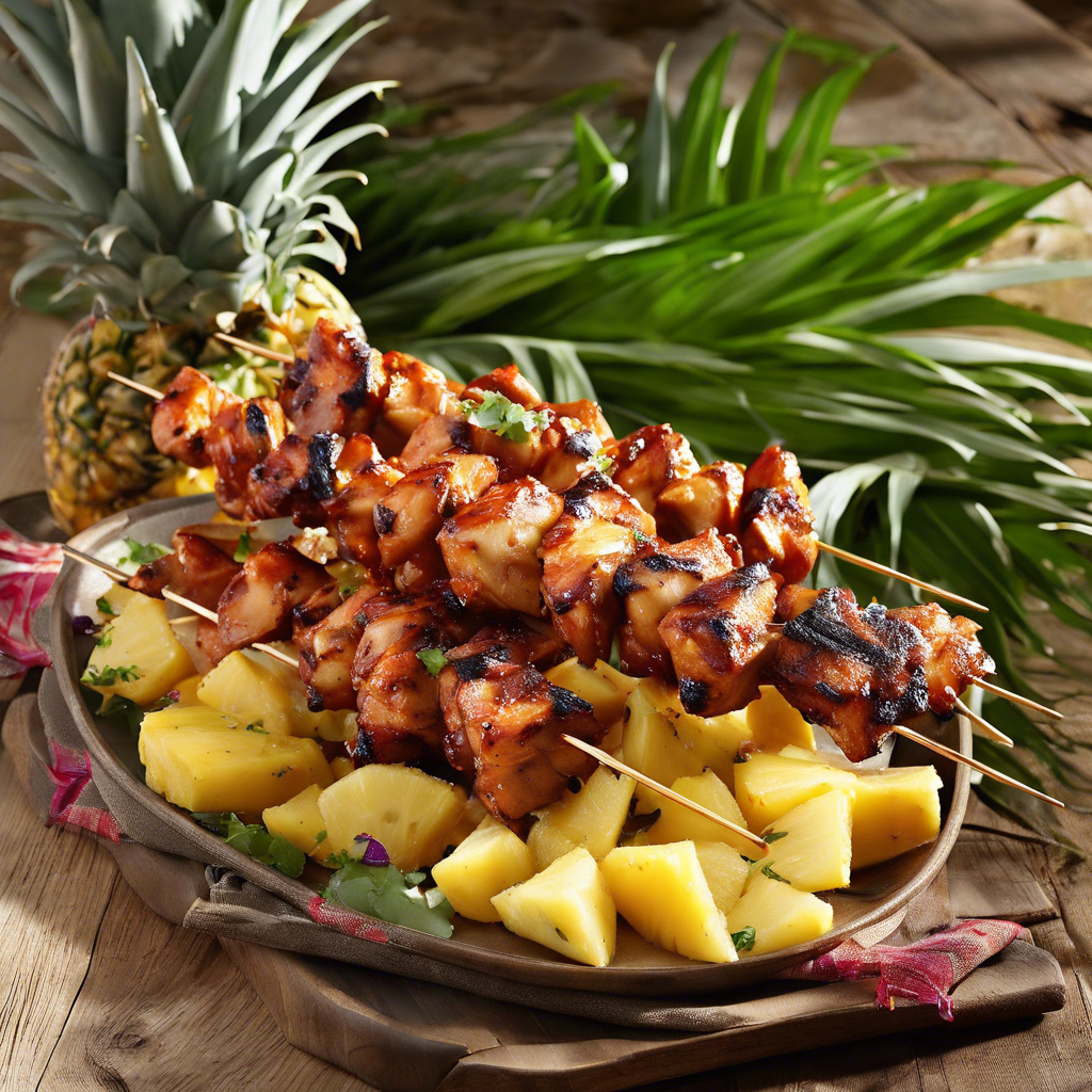 BBQ chicken skewers with pineapple chunks are a delightful fusion of sweet and savory flavors that have become a popular dish in many parts of the world. This dish has its roots in the traditional Hawaiian cuisine, where the combination of grilled chicken and pineapple has been a staple for centuries. The succulent chicken is marinated in a blend of tangy barbecue sauce and tropical pineapple juice, then skewered with juicy pineapple chunks and grilled to perfection. The result is a mouthwatering dish that is bursting with flavor and perfect for summer cookouts or luau-themed parties. Chefs and home cooks alike have put their own spin on this classic dish, adding their unique flair with different marinades and seasonings. Today, the best versions of this dish can be found in Hawaiian restaurants and BBQ joints that specialize in tropical-inspired cuisine. To make the perfect BBQ chicken skewers with pineapple chunks, it's essential to use high-quality, fresh ingredients and to grill the skewers just long enough to achieve a caramelized exterior while keeping the chicken tender and juicy. For a fun twist, some chefs also incorporate alternative methods such as using a smoker or adding a spicy kick with jalapenos or a sprinkle of chili flakes. Whether you're in Hawaii or your backyard, these BBQ chicken skewers with pineapple chunks are sure to be a hit at any gathering.