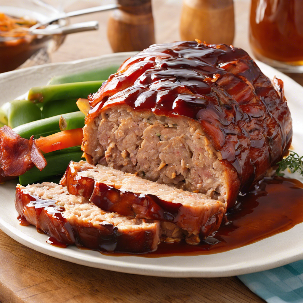 The BBQ Glazed Turkey Meatloaf with a bacon-wrapped exterior is a modern twist on the classic meatloaf, combining the smoky flavors of barbecue with the savory goodness of bacon. This dish has its roots in the American South, where barbecue and meatloaf are beloved culinary traditions. The idea of wrapping the meatloaf in bacon adds an extra layer of richness and flavor, making it a popular choice for special occasions and family gatherings. The history of this dish can be traced back to innovative chefs and home cooks who sought to elevate the humble meatloaf into a show-stopping entree. By adding a sweet and tangy barbecue glaze and encasing the meatloaf in crispy bacon, they created a dish that is both comforting and indulgent. Today, the best versions of this dish can be found in barbecue joints and upscale restaurants across the country, where chefs put their own spin on the recipe. The key to getting this dish right lies in the quality of the turkey, the seasoning of the meatloaf, and the careful application of the barbecue glaze. Some alternative methods for making this dish include using different types of barbecue sauce or experimenting with different bacon varieties to achieve the perfect balance of flavors. Whether you're a fan of traditional meatloaf or a barbecue aficionado, the BBQ Glazed Turkey Meatloaf with a bacon-wrapped exterior is sure to satisfy your cravings for comfort food with a gourmet twist.